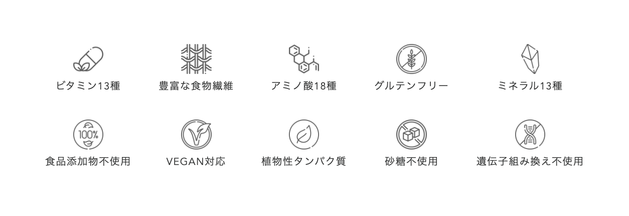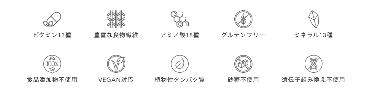 ・アミノ酸18種類配合(掲載範囲の関係上公式サイトにて記載)・ビタミン13種類配合