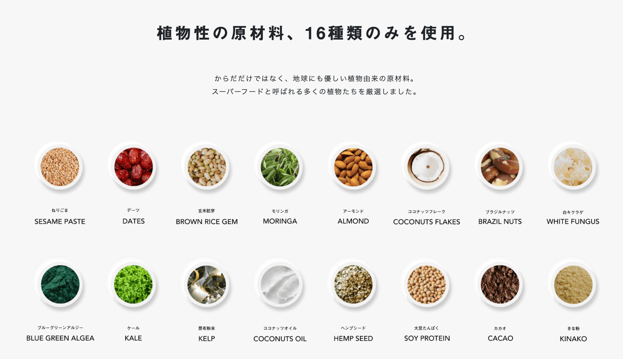 ・植物性の原料、16種類のみを使用(ヴィーガン)