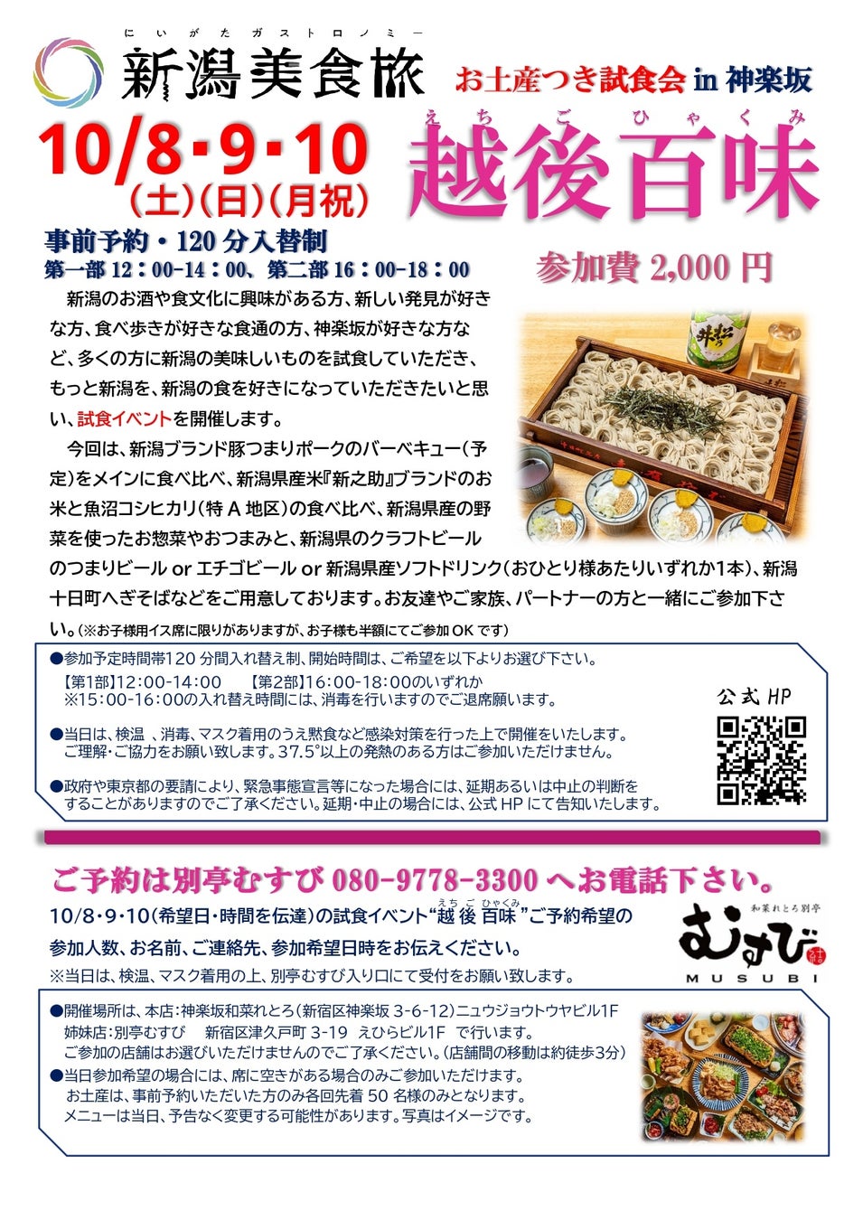 神楽坂で10/8~10試食イベント「越後百味」inを開催 新潟の食を楽しむ新潟美食旅(ガストロノミー)イベントを開催