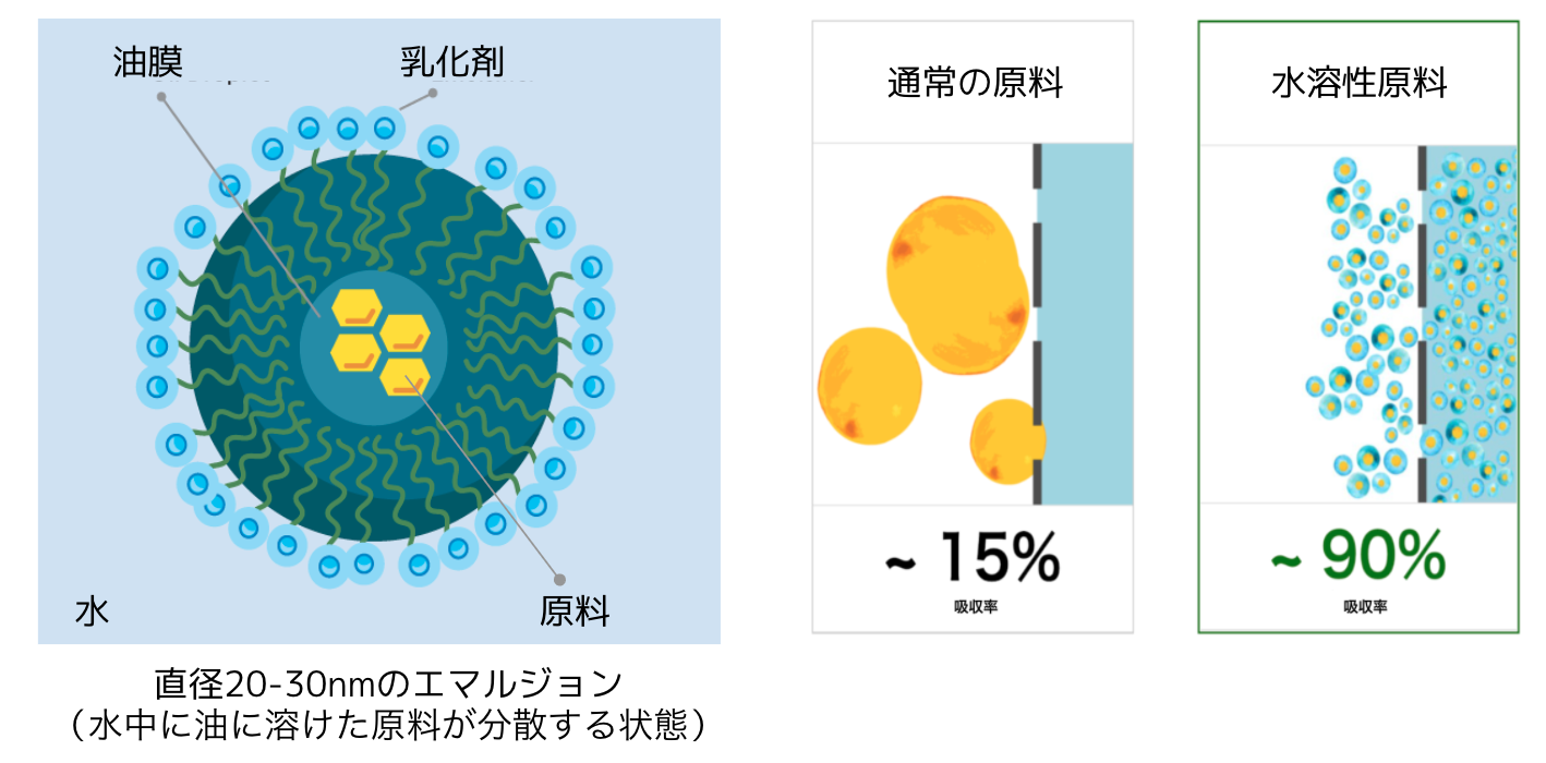 ナノエマルジョンによる高い吸収率