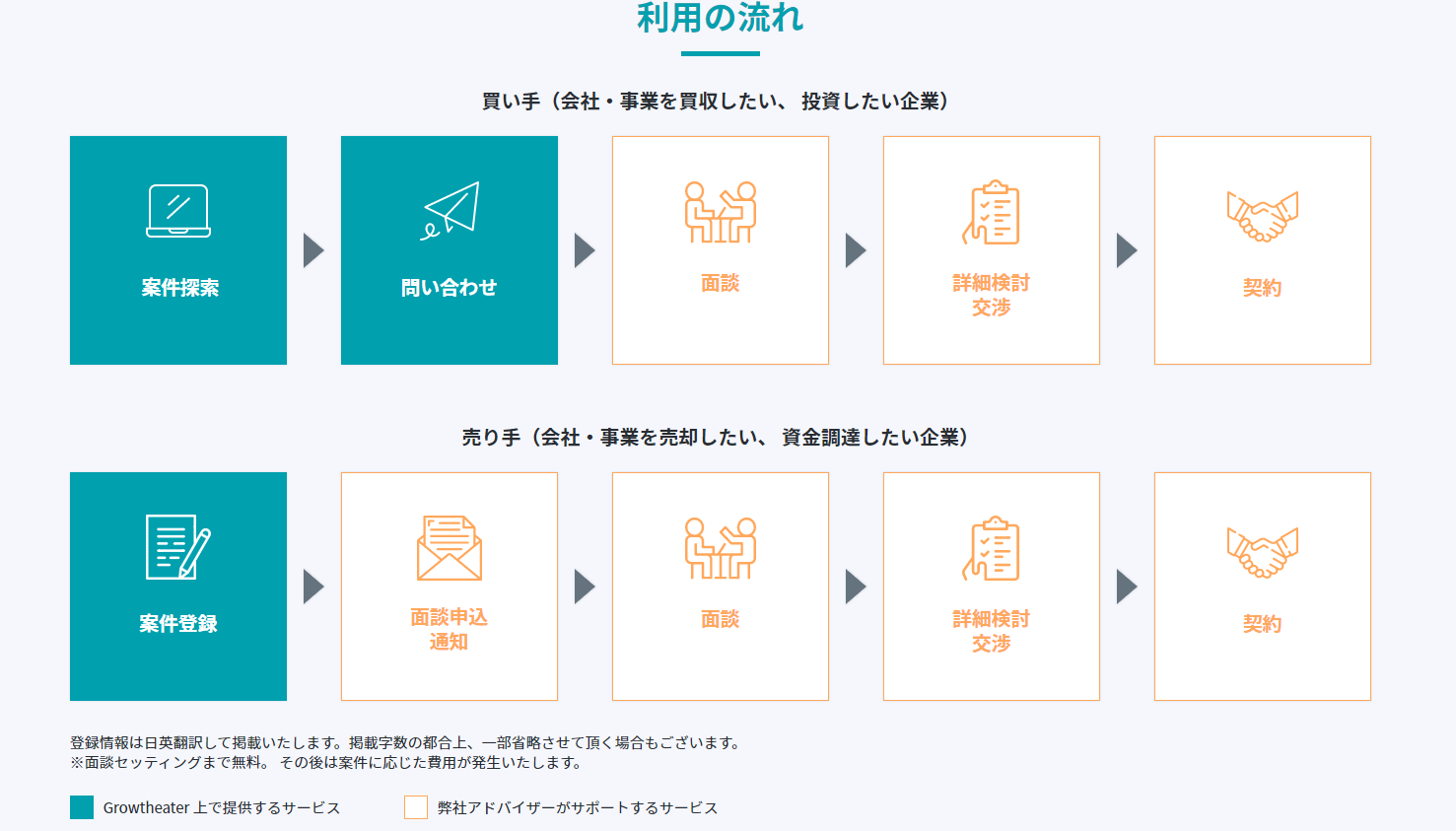 Growtheaterは、M&A(買収)を希望、スタートアップ企業に投資をしたい企業「買い手」とM&A(売却)を希望、資金調達をしたい企業「売り手」が無料で閲覧、ご登録できるサイトです。M&A(売却)を希望、資金調達をしたい企業情報のご登録は企業様ご自身またはVC、CVCやアドバイザーが代理登録することも可能です。
