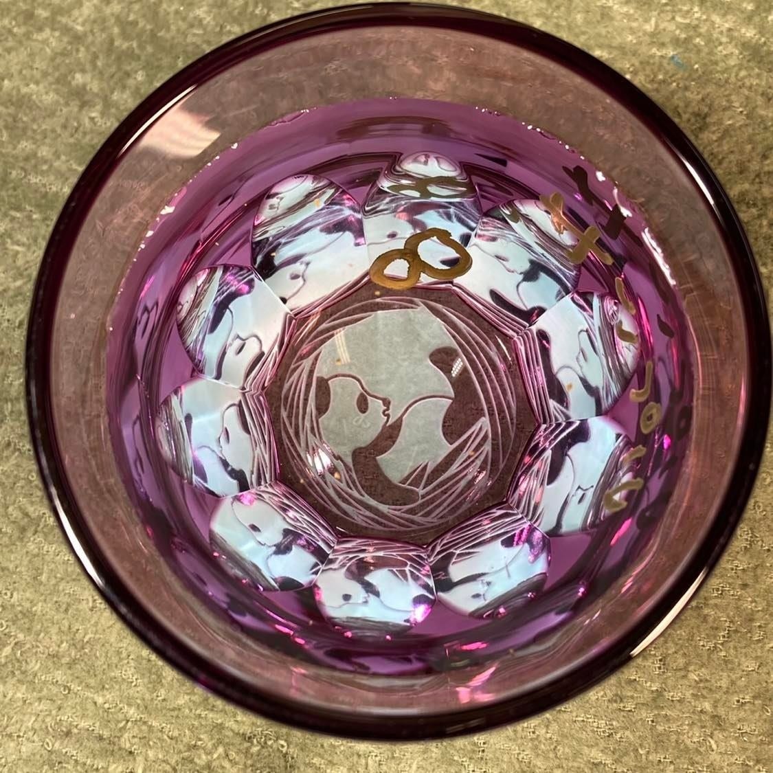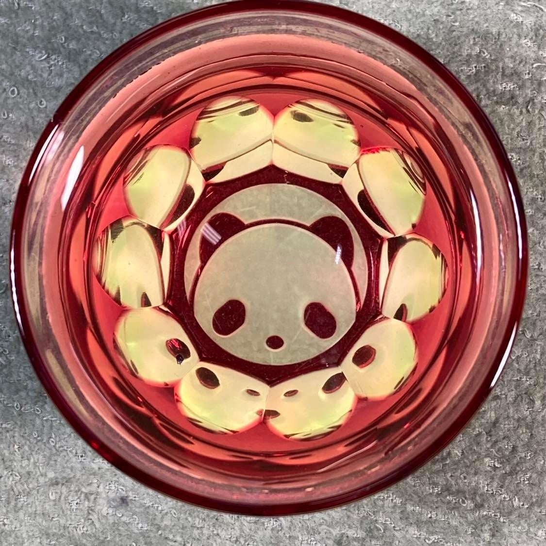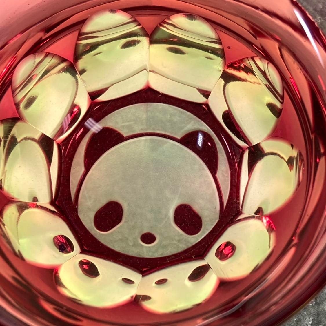 2.江戸切子の技術である平切子を側面に加工、底面のパンダはサンドブラストで彫刻したオリジナル切子