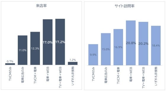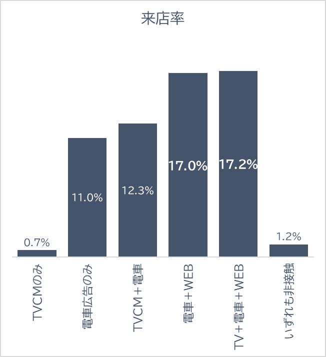 ・分析対象: 都市型店舗業態 テレビCM・電車内広告・WEB広告の単体と組み合わせによる店舗来店、自社サイト訪問への効果