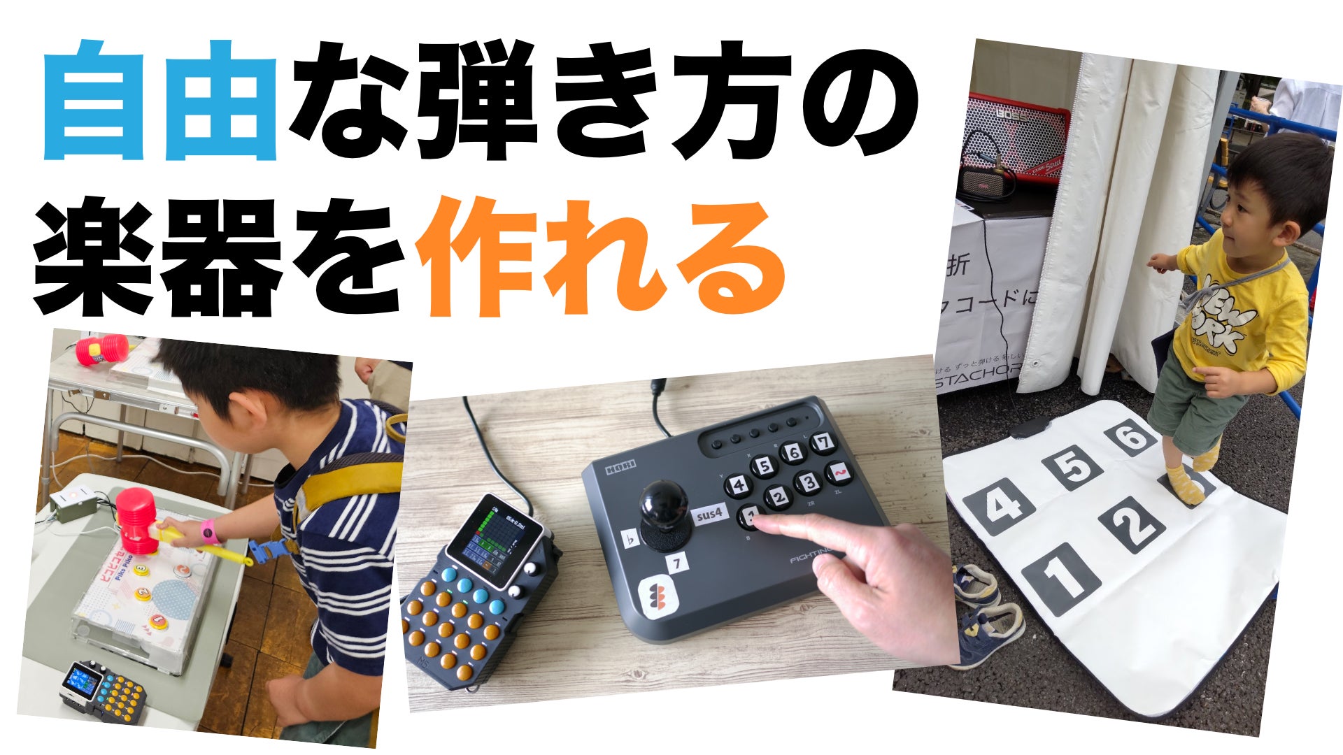「かんぷれ」はUSB接続したゲームコントローラーや、拡張ポートに接続したボタンなどに演奏操作を割り当てることができるので、その人の弾きやすい形状や操作方法の楽器を自由に作れます。全ての人に寄り添った究極のバリアフリーを目指すとともに、アーティストにとっては表現の幅を広げる手段になります。