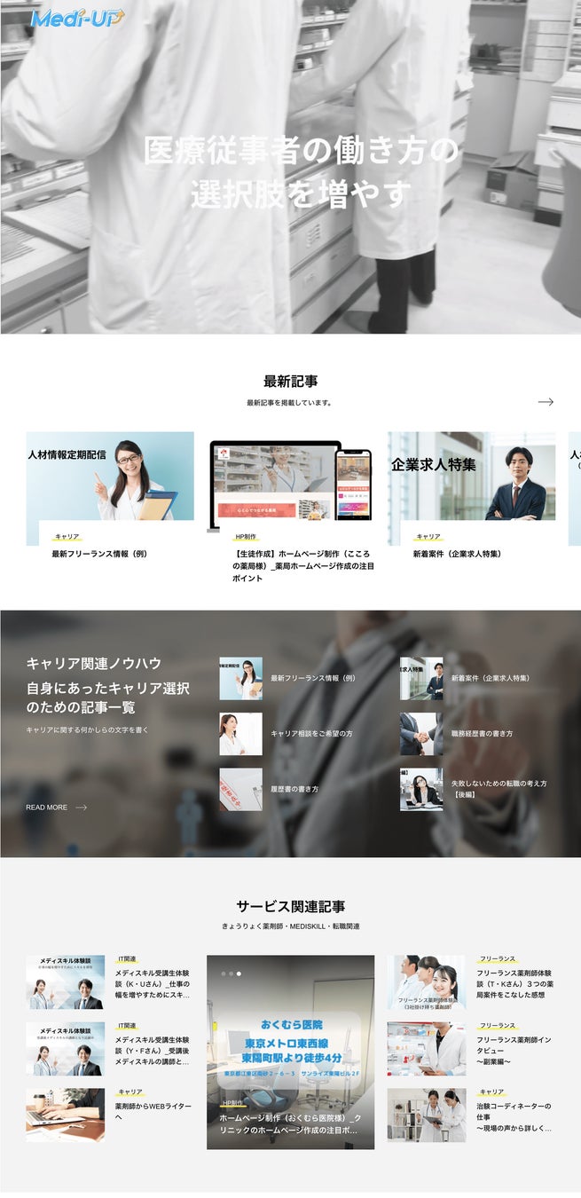 【Medi-UP(メディアップ)】リリース開始!医療・副業・ITスクール・クリニックHP・薬局HP作成のオウンドメディア