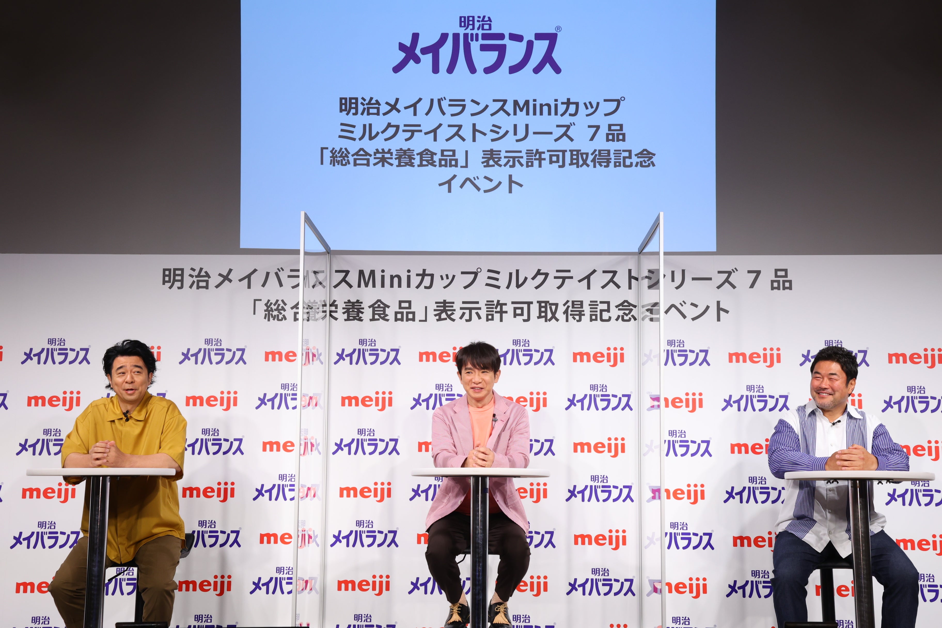 佐々木さん、有野さん、濱口さんのお三方をスペシャルサポーターに迎えて開催した明治メイバランスMiniカップ ミルクテイストシリーズ7品「総合栄養食品」表示許可取得記念イベントは、今後「明治メイバランス」が安心感を持って多くの人に使っていただけることへの期待が高まる会となりました。