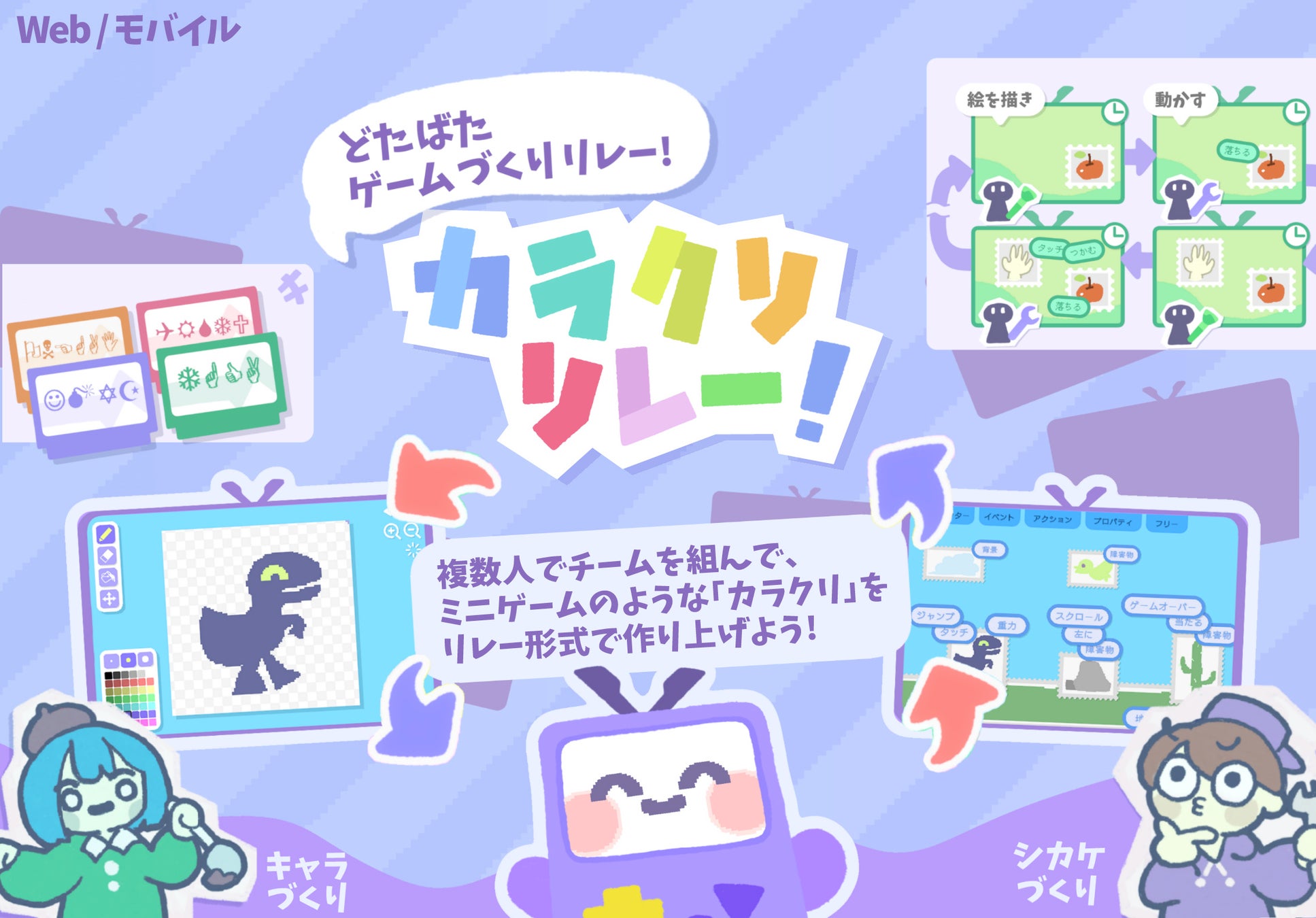 複数人でチームを組み、AIアシスタント「クリッコ」と共に、リレー形式でミニゲームのような「カラクリ」を完成させる共創型ゲーム。プログラミング知識は不要で、即興×共創×創発のおもしろさを体験・共有できる。