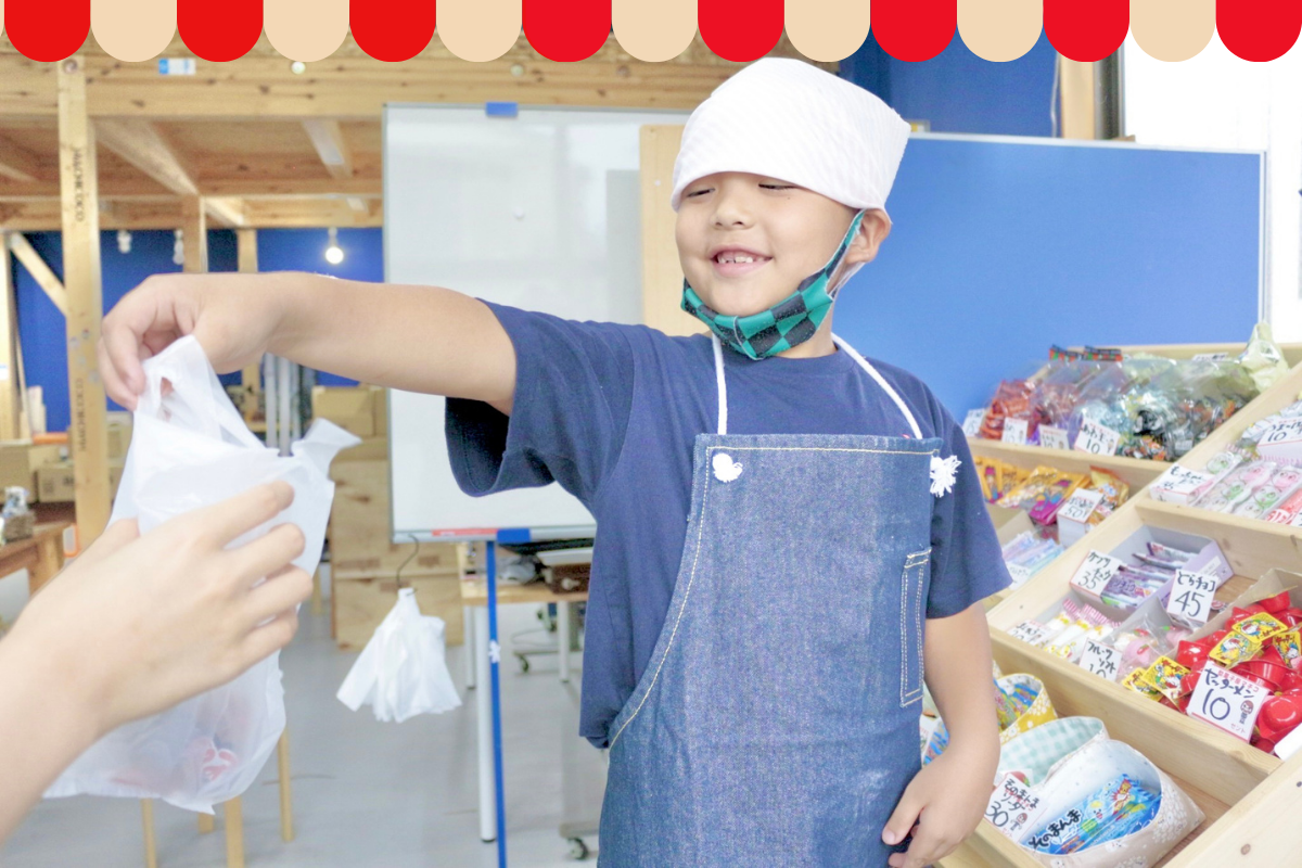 宿題が終わったら駄菓子屋さんの店員さん体験ができます。