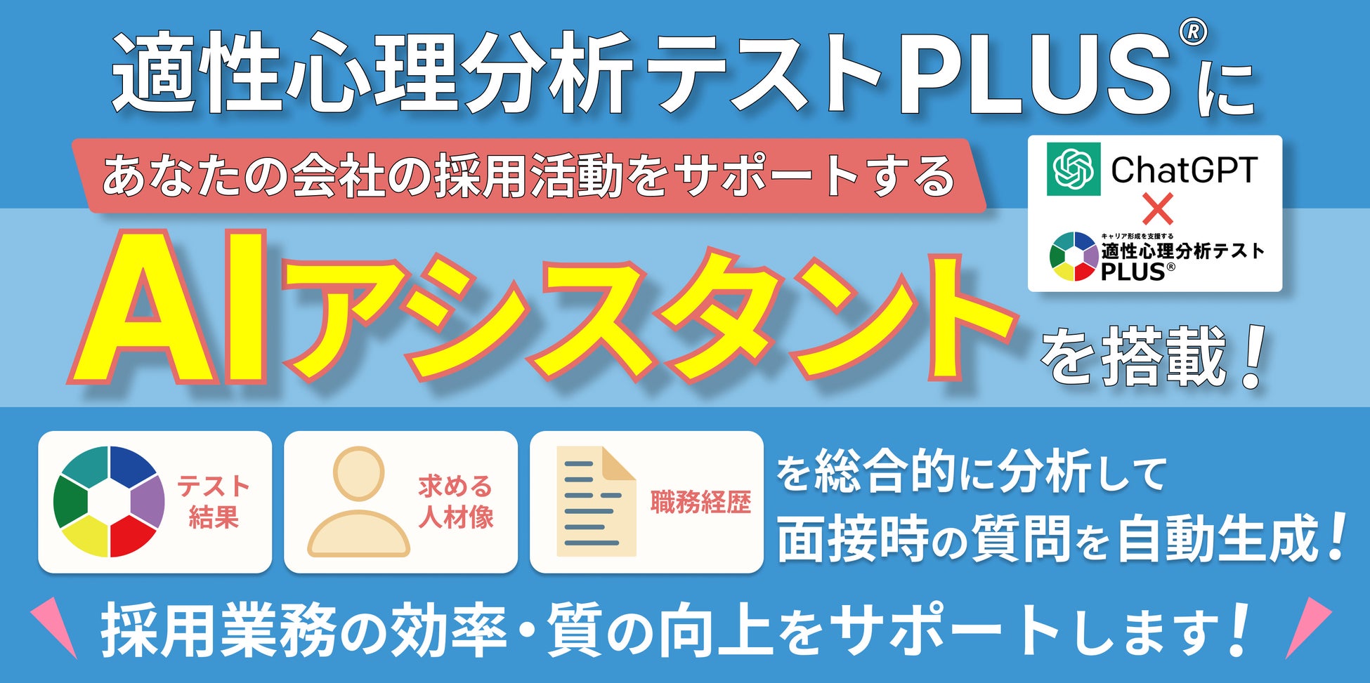 【株式会社ベックスコーポレーション】「適性心理分析テスト PLUS」に新機能「AIアシスタント」が登場! ~応募者の理解を深め、的確な採用活動を実現~