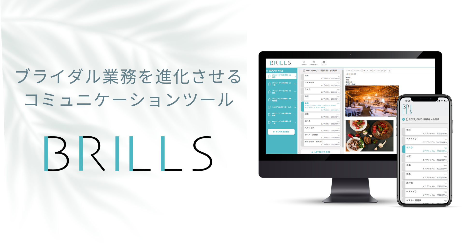 しかし、アフターコロナのブライダル業界の人材不足は深刻で、ブライダル業務のDXは必須になっております。弊社では自社で培った知見を基にブライダル業務を効率化するコミュニケーションツール「BRILLS」を開発しました。BRILLSはブライダル業界の人材不足を解決するツールだと考えており、本事業に注力することが重要であると判断しました。そこで社名もサービス名と同じ株式会社ブリルズに変更し、開発・販売を強化してまいります。