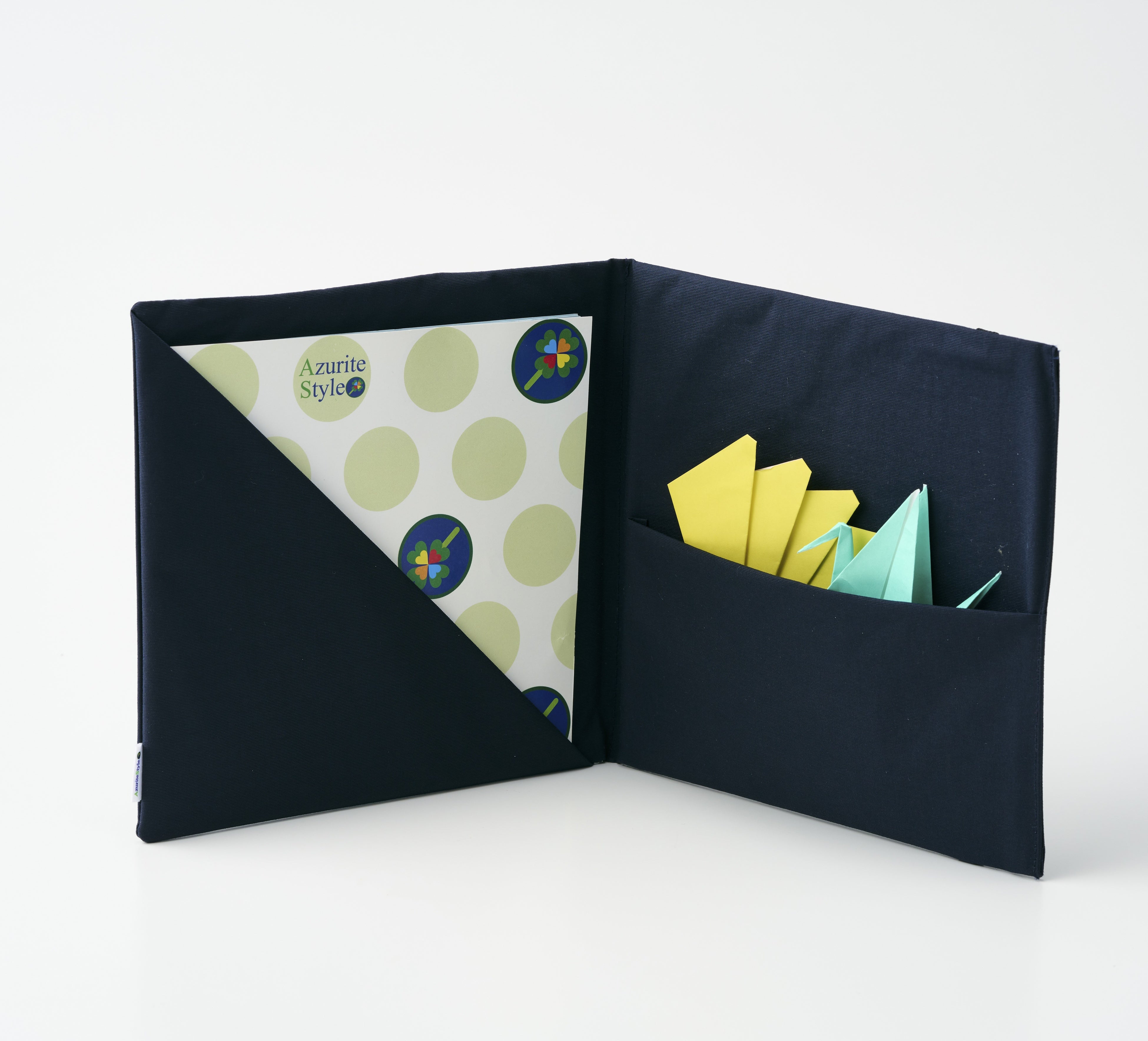 嵩張らず上品に持ち歩けるケースをコンセプトに2018年に企画考案。発売以来、ご自分用にも贈り物にも選ばれ続ける人気アイテムです。お子さまが留めやすいゴムバンドや作品収納ポケットを備え、刺繍を添えれば自分だけの折り紙ケースに。