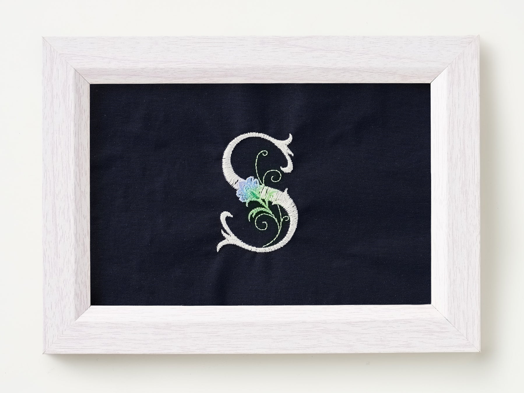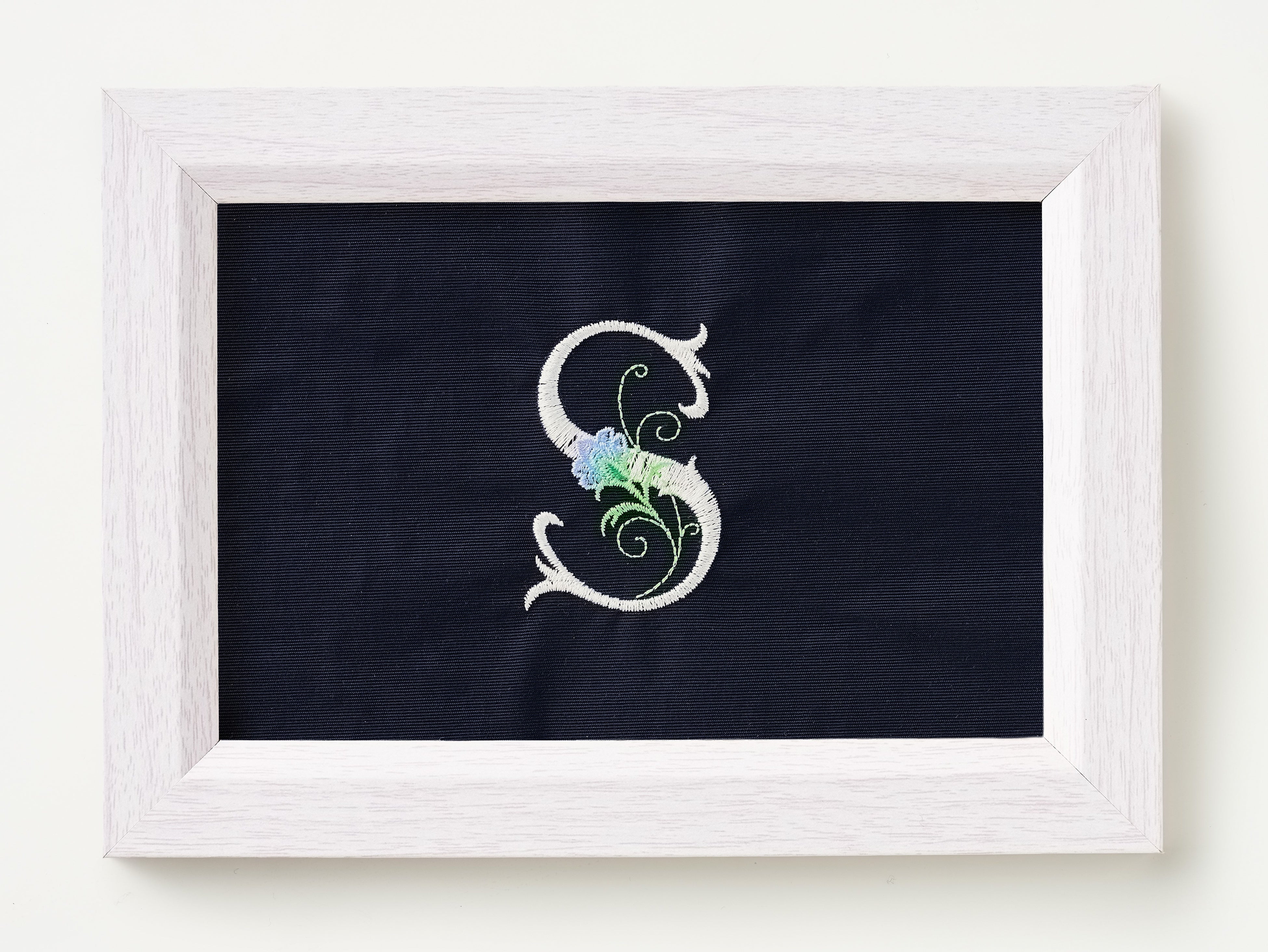 A~Zまで、お好きなイニシャルと糸色が選べます。お母様にもお嬢様にも大人気。