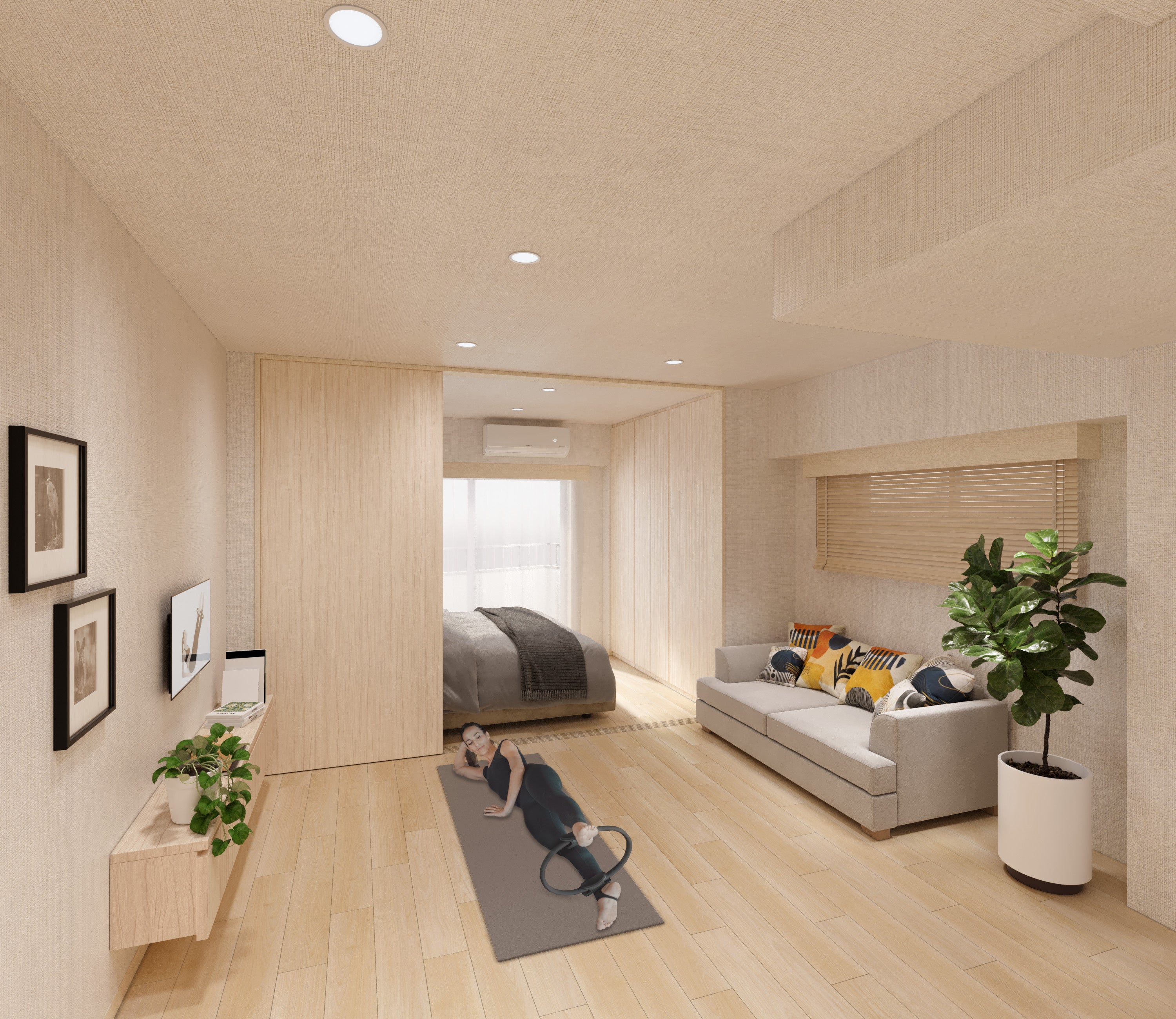 毎日家でピラティスが可能な設備を部屋に完備。レッスン時はもちろん、レッスンがない日でも、自身の身体と向き合うことができます。