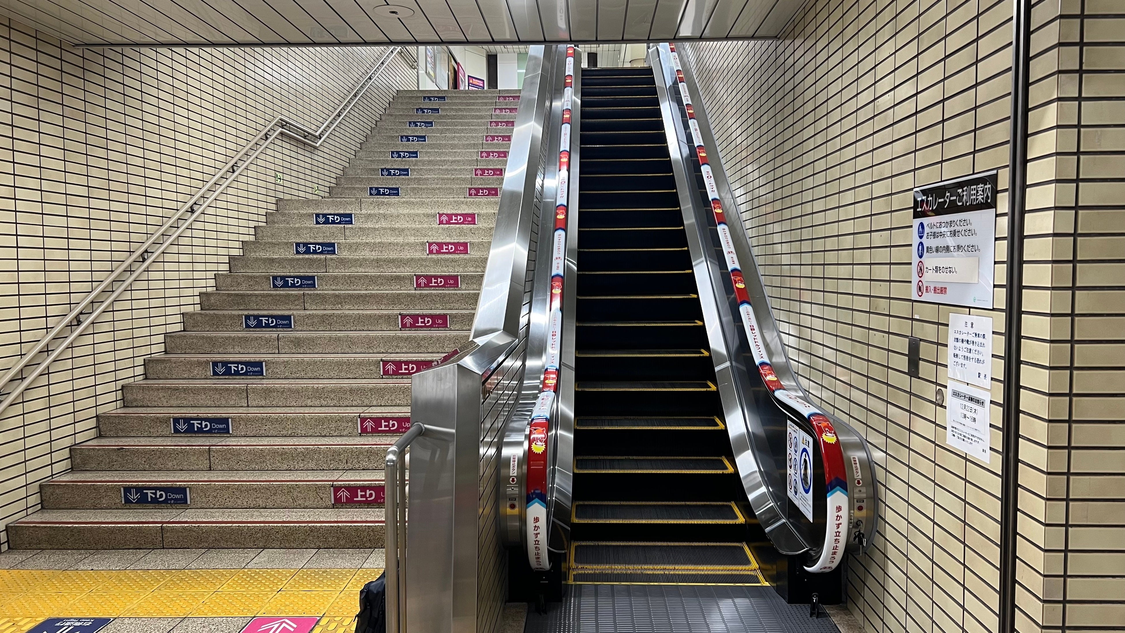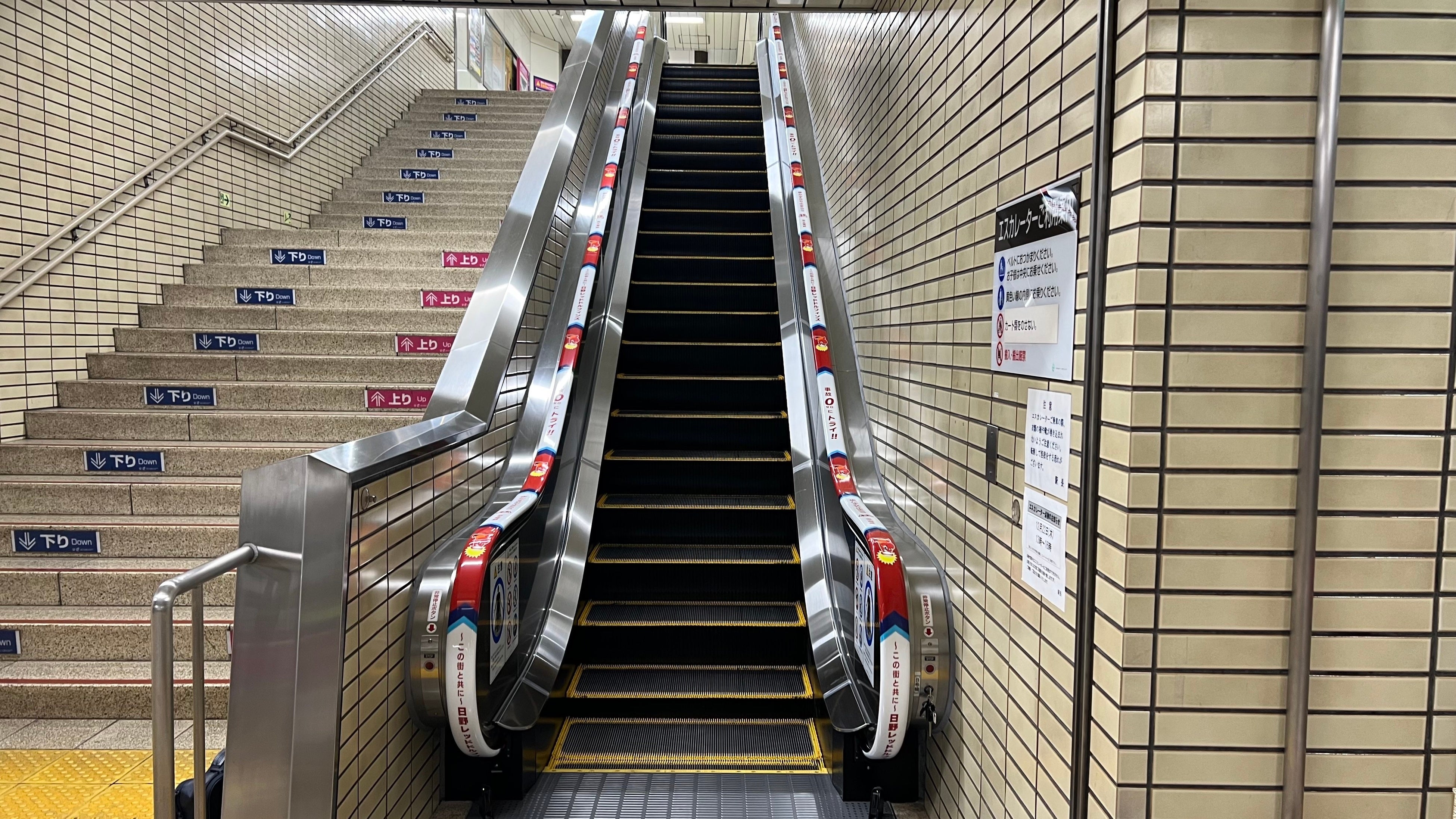 京王八王子駅構内のエスカレーターにユニバーサルデザインの手すりベルトを設置