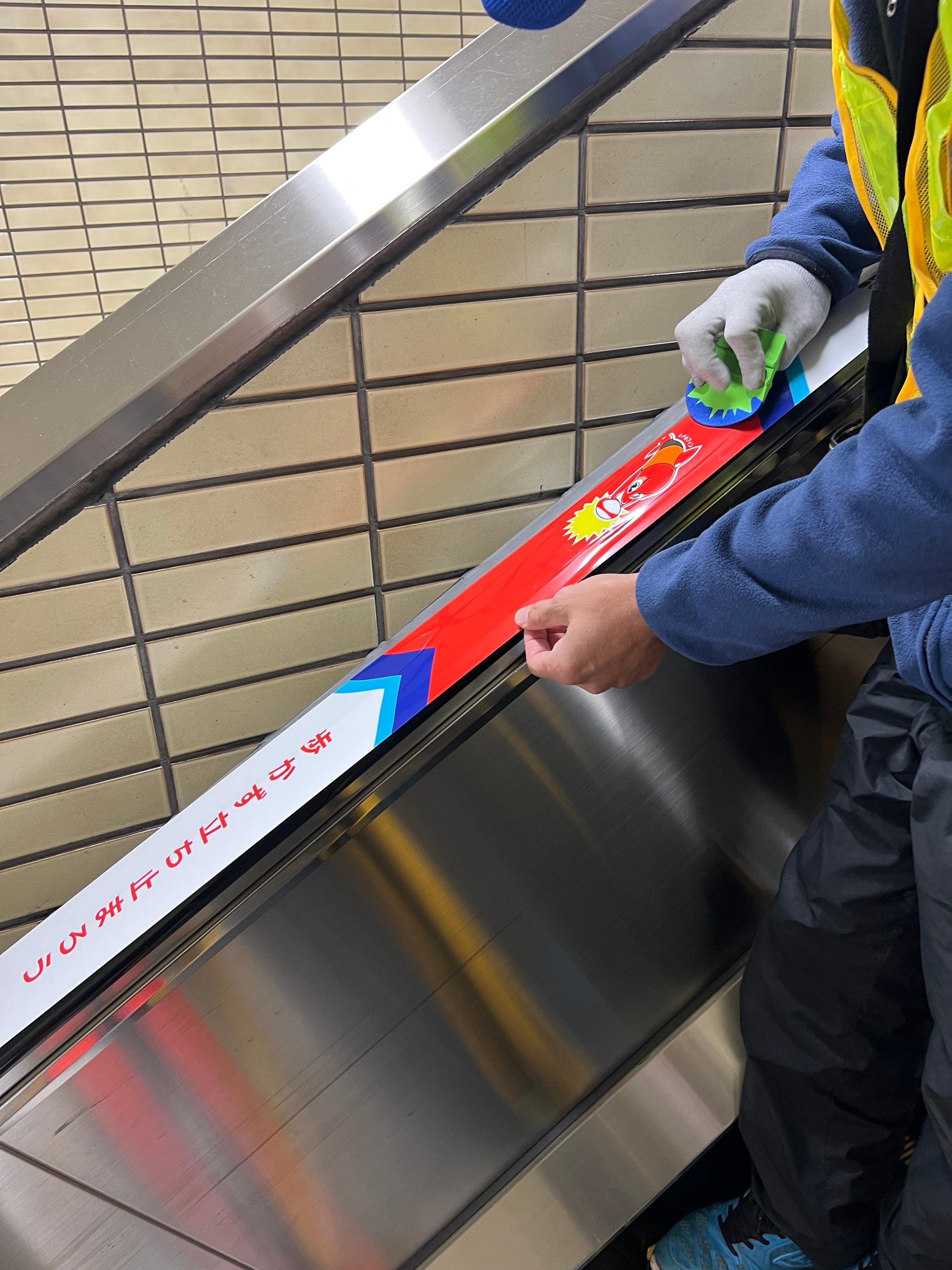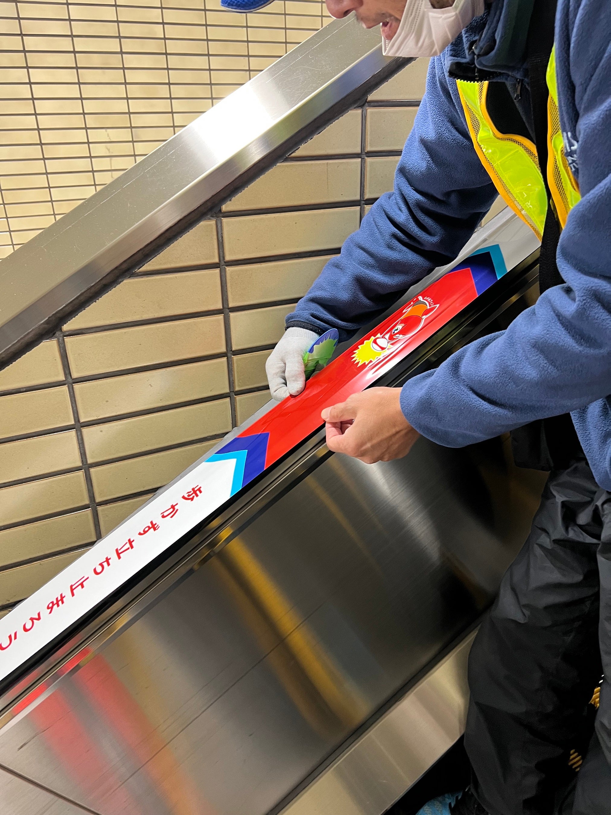 ・エスカレーター手すり広告の制作、施工管理