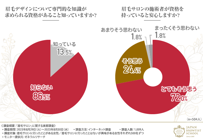 ”眉毛に関する資格”知っている人は少ないが、9割以上が「資格保持者は安心」と思っている