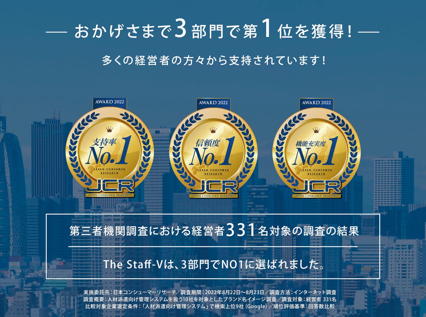 ヒューアップテクノロジーの「The Staff-V」が経営者が選ぶ人材派遣管理システム調査の3部門で1位を獲得!