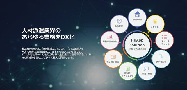 ヒューアップテクノロジーは、人材派遣業向けの勤怠管理システム「DigiSheet」を中心とした、クラウドサービスを提供してきた株式会社アスペックスと人材派遣業向け管理システム「The Staff-2000」およびその後継サービスの「The Staff-V」を提供していた株式会社ビジネスアプリケーションが2022年4月に合併した会社です。