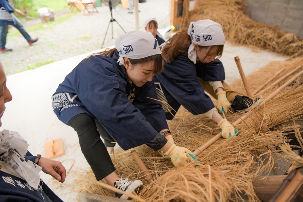 (写真は美山町で実施されている茅葺き体験のイメージです。)