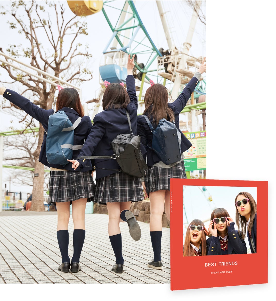 友人と学校生活やプライベートで撮りためた想い出を、卒業アルバムとして一冊のフォトブックに。