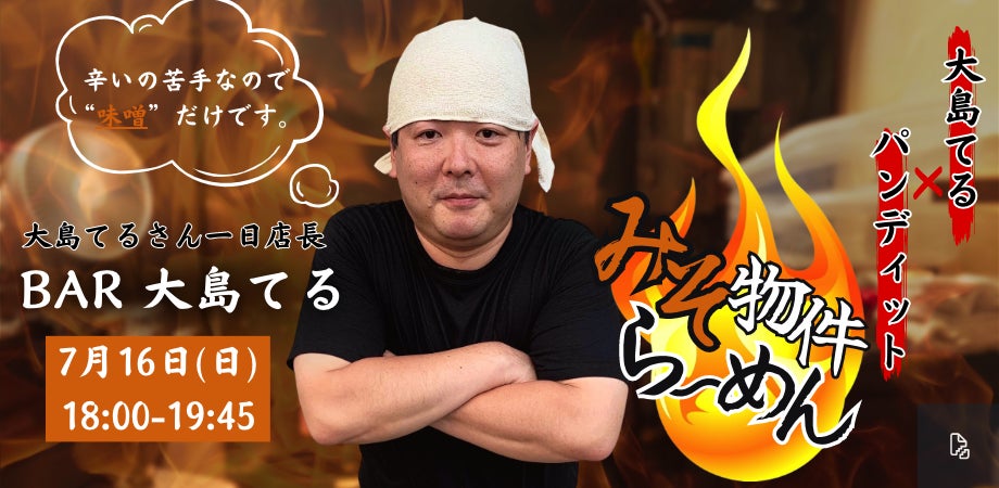 株式会社パンディット(本社:東京都杉並区、代表:奥野 徹男)が東京・高円寺で運営するイベントスペース「パンディット2号店」で、2023年7月16日(日)に東京都杉並区で開催される「BAR 大島てる」を開催いたします。配信なしでの事故物件トークライブに加え「みそ物件らーめん」なるオリジナルラーメン(高円寺の有名ラーメン店が監修)を販売します。