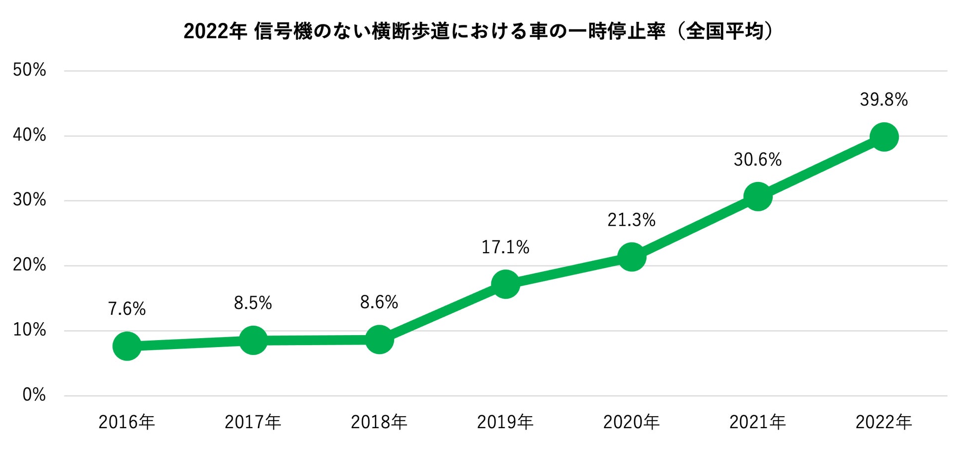 ※グラフは、一般社団法人 日本自動車連盟 (https://jaf.or.jp/common/safety-drive/library/survey-report/2022-crosswalk)をもとに当社が作成。