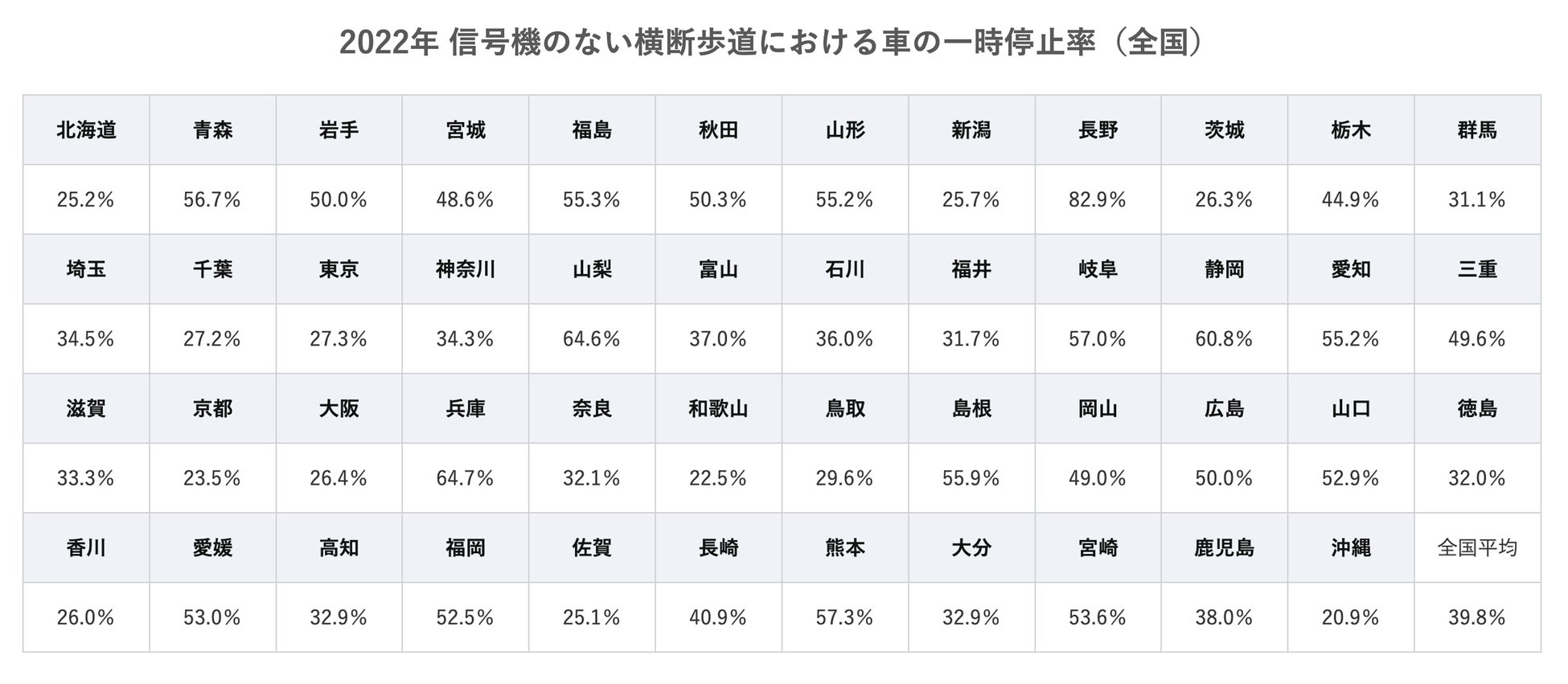 ※画像は、一般社団法人 日本自動車連盟( https://jaf.or.jp/common/safety-drive/library/survey-report/2022-crosswalk)より引用。