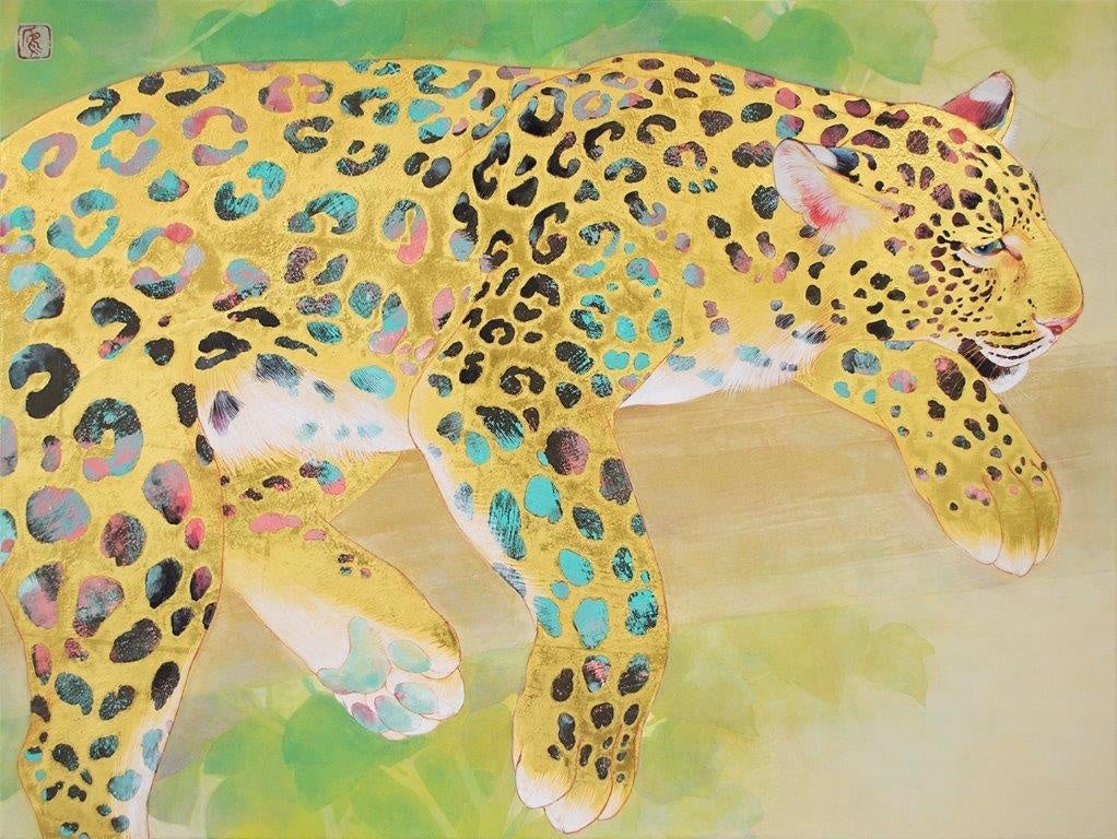 『樹上の休息』45.5×60cm 紙本着彩(和紙に金箔、銀箔、岩絵具)