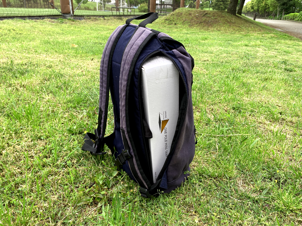 自転車のカゴ、バックパックにもすっぽり入ります。