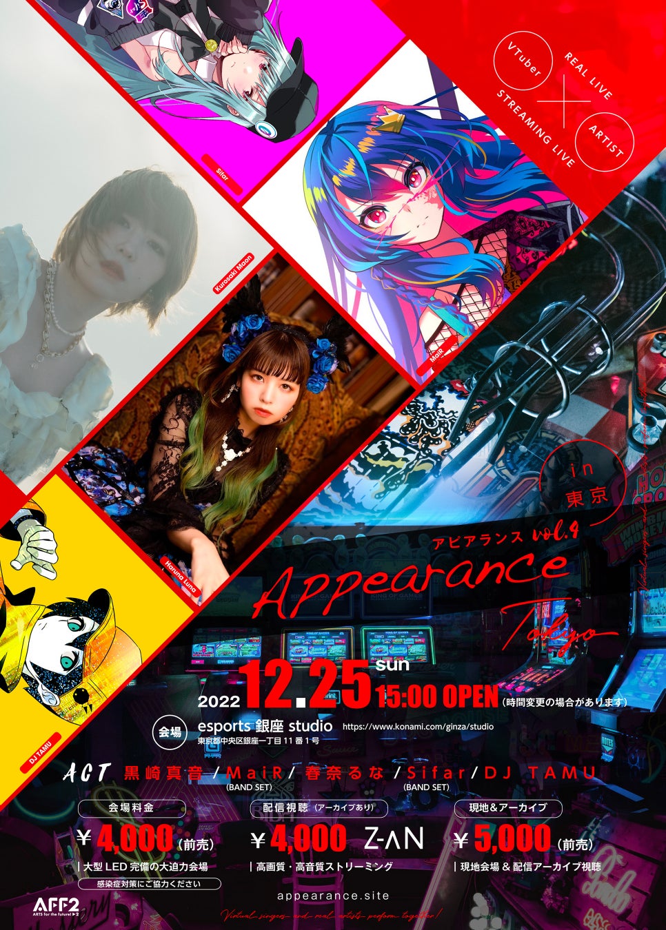 12/25(日)リアルアーティストとVTuberによるリアルライブ!「 #Appearance東京 」#黒崎真音 / #MaiR / #春奈るな / #Sifar / #TAMU