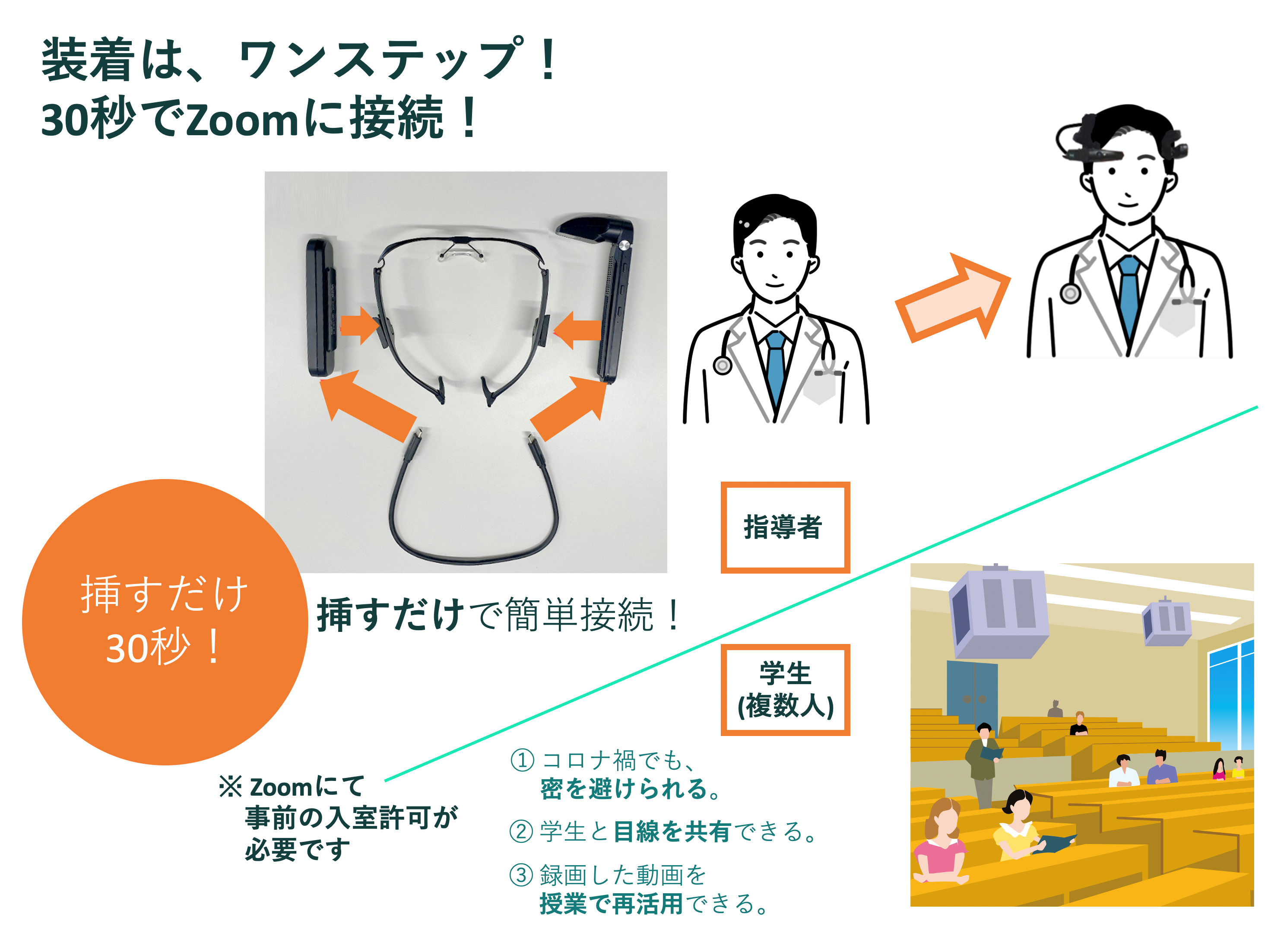 現代社会において、人口の減少、若い世代の職業意識の変化、医療ニーズの多様化に加え、医師等の偏在などを背景として医療機関における医療従事者の確保が困難な状況が続いています。その中で、質の高い医療提供体制を構築するためには、高い教育水準を維持し優秀な人材を輩出していくことが重要です。しかし、COVID-19による感染症流行により一部の臨床現場における臨床教育は中止せざるを得ない現状があり、教育の在り方が問われています。シンクロアイズは、これまでに建築・工事現場において、遠隔作業を実現しており、この度、医療系の臨床教育現場における利用可能性・有用性について東京医科歯科大学の耳鼻咽喉科学、肝胆膵外科学分野、整形外科、救命救急センター、統合教育機構の5領域において検討いたします。このように多領域にわたって効果を検討することによって、より幅広い知見が得られることが期待できます。