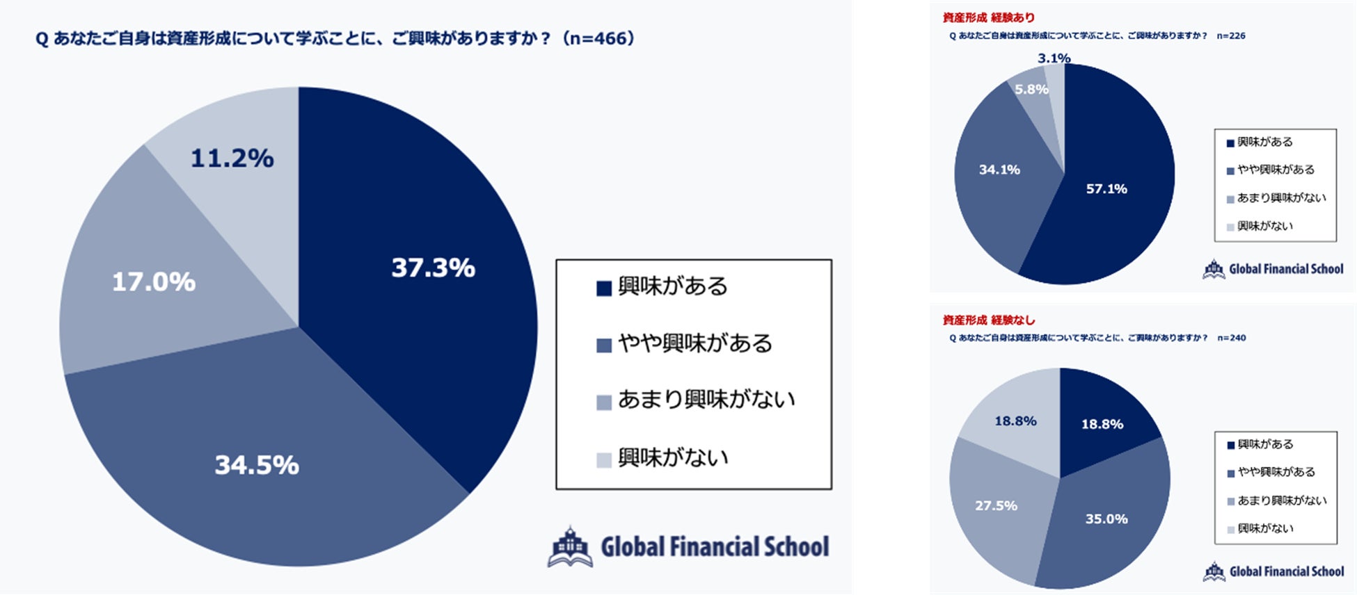 「資産形成」をしているしていないに関わらず、ご自身がそれを学ぶことに7割が興味あり