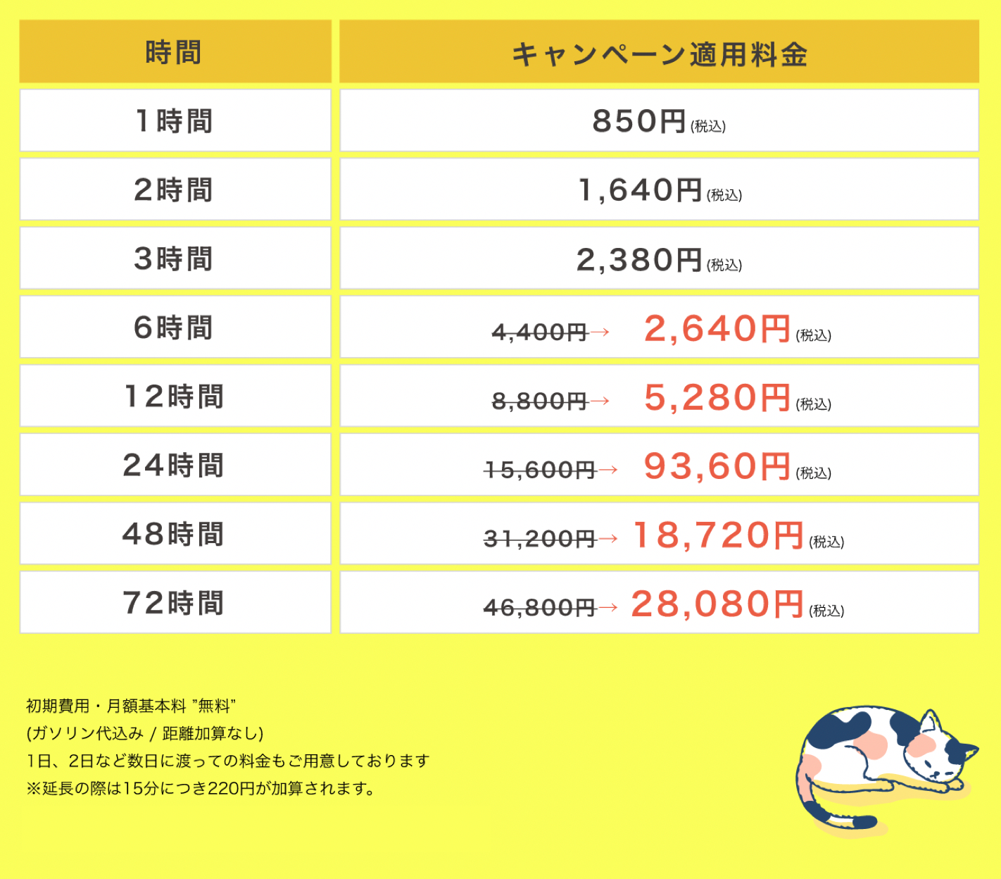 ※6時間ご利用の場合4,400円 → 2,640円!1時間あたり440円!