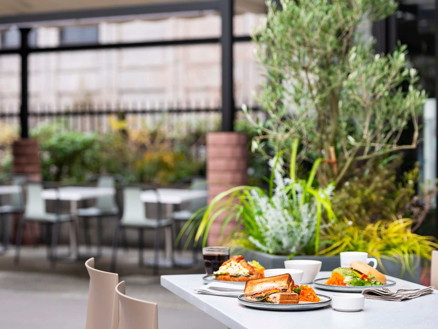 朝から晩まで一日を通して活用いただけるオールデイダイニング「KANPAI TERRACE」では、「テラスで食べるモーニング」をコンセプトとしたサンドイッチ類の朝食や、ランチタイム以降にご提供している人気のバーガー類、ミートプラッターにも含まれているアンガス牛のビステッカなど、各時間帯にこだわりの単品メニューも多数ご用意しております。