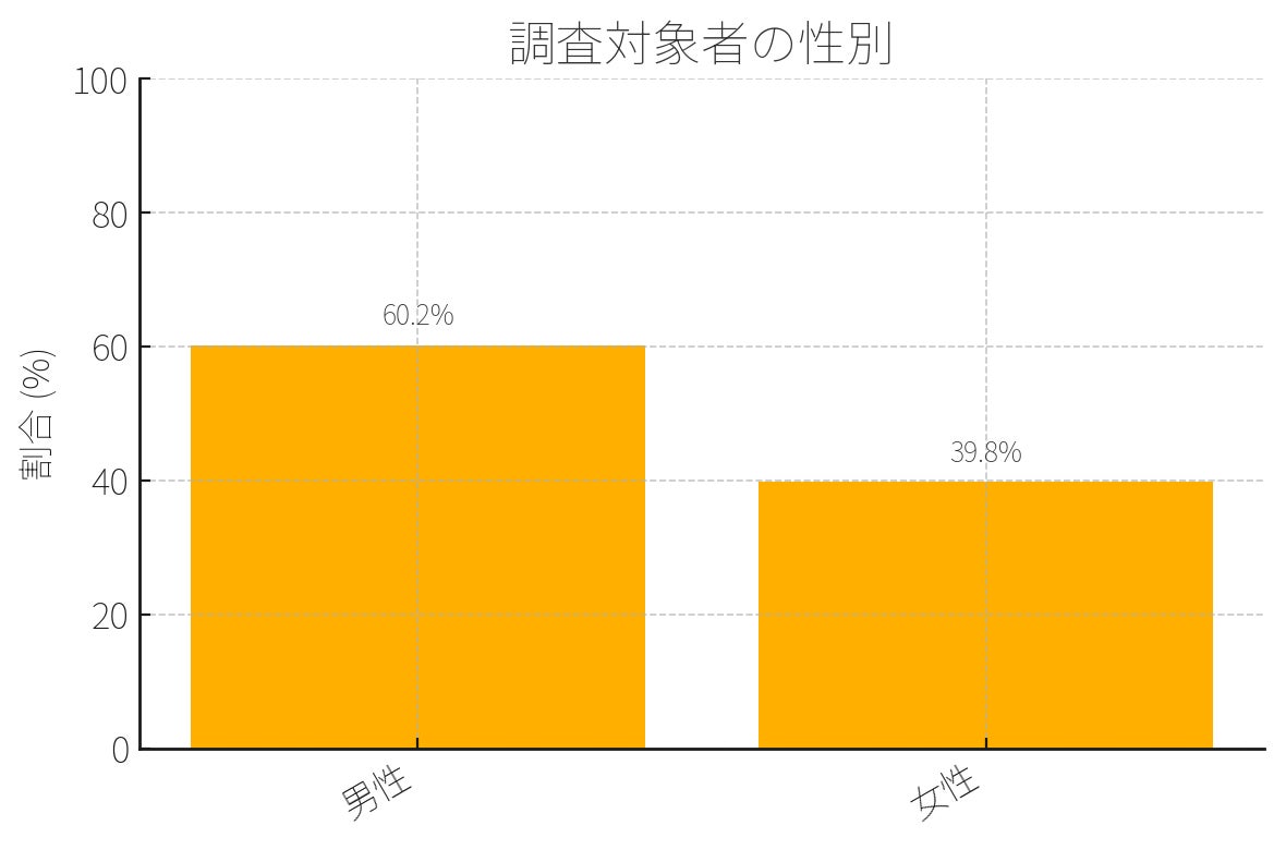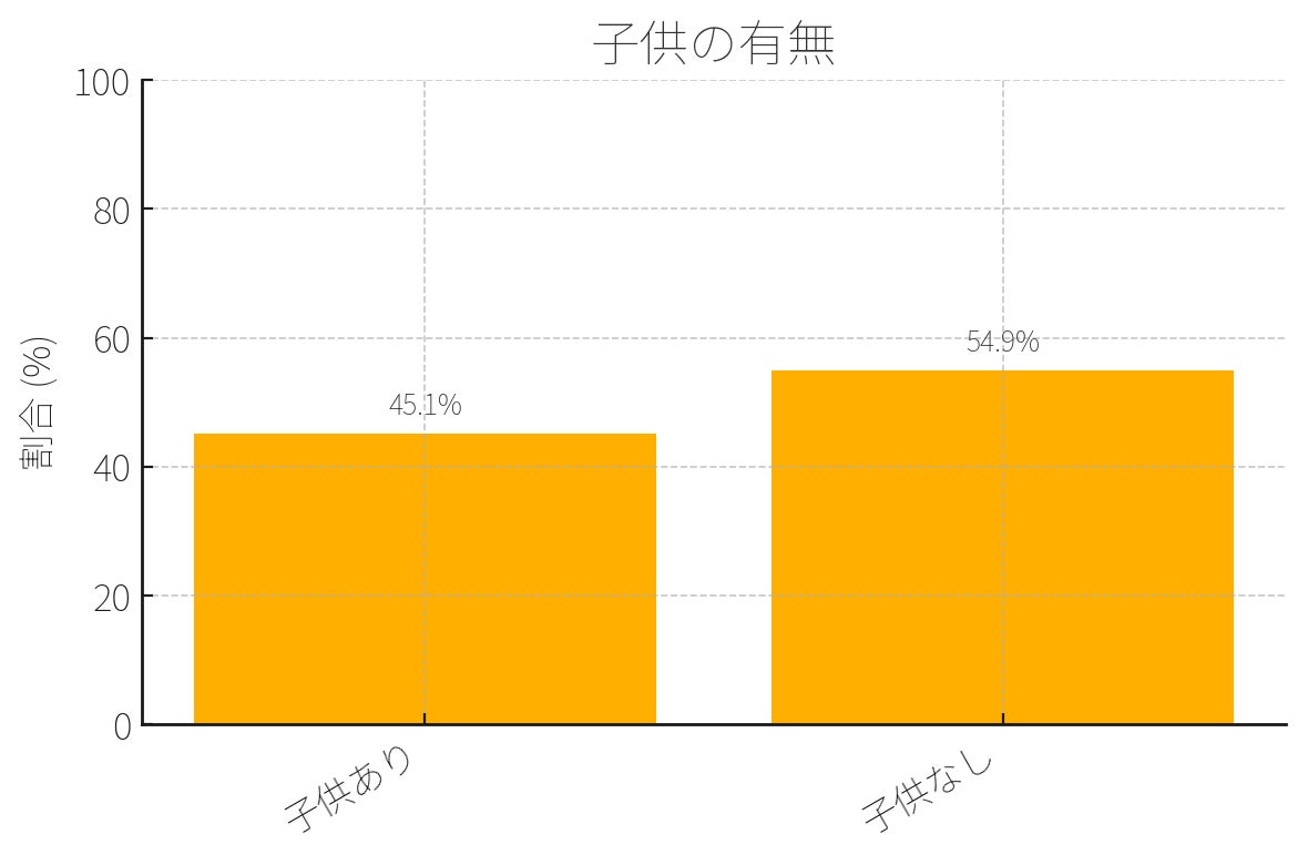 調査対象者の属性は、男性60.2%、女性39.8%で、年代は30代〜40代が54.5%を占め、次いで50代が18.0%となっています。また、既婚者と未婚者は各50.0%、子供がいる方は45.1%と、幅広い層から回答を得ることができました。居住エリアは関東が47.8%と約半数を占め、次いで中部が14.6%、近畿が12.8%となっています。