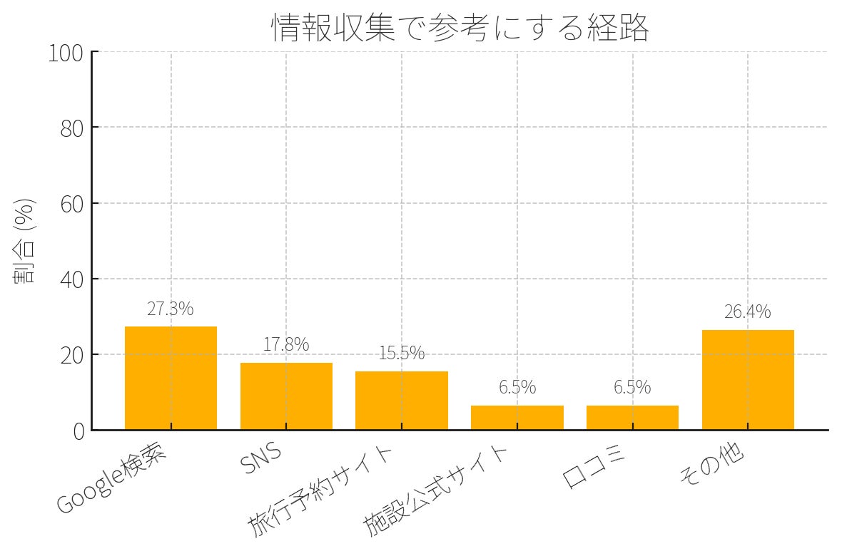 施設側としては、GoogleやSNS、旅行予約サイトをバランスよく活用したマルチチャネルでの情報発信が効果的と言えるでしょう。特に写真映えするスポットや独自の体験は、SNSでの拡散効果が期待できるため、戦略的な情報発信が重要です。