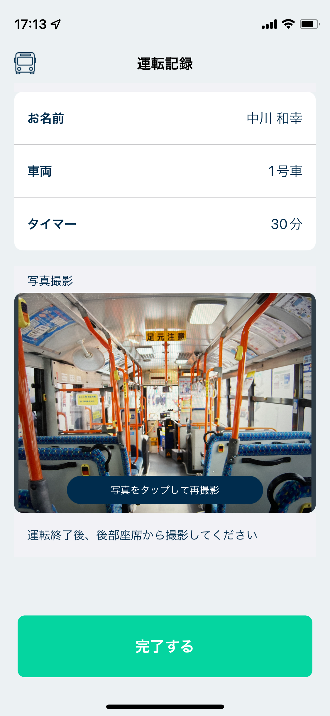 2. 運転終了後に、後部座席に移動して写真を撮影、アップロードする。