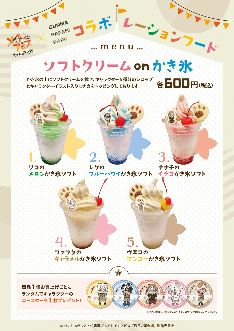 ※コラボかき氷ソフトの販売をいたします。購入者特典として、特製描き下ろしコースターをランダムでプ レゼントします。