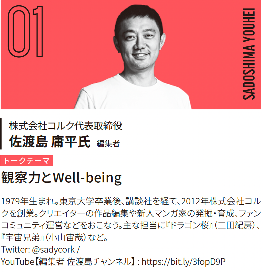 各ゲストのトークテーマとプロフィールは下記の通りです。