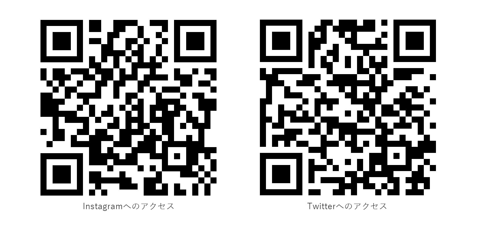 〇公式Instagramアクセス用QRコード(左) / Twitterアクセス用QRコード(右)