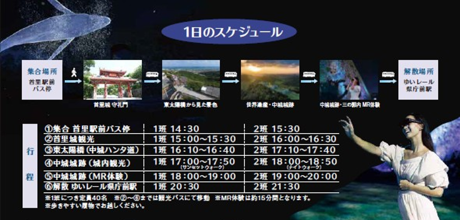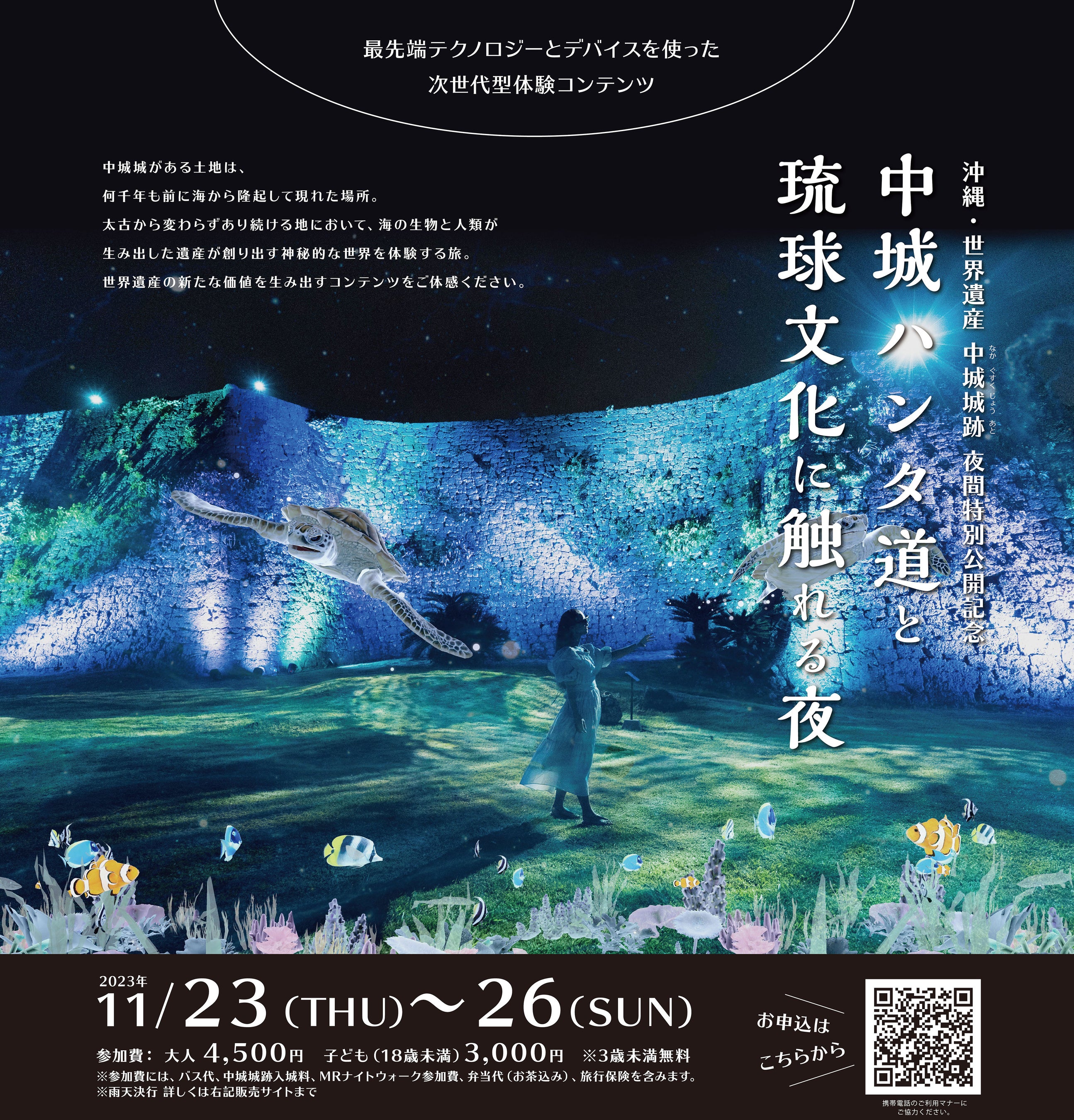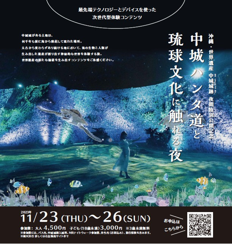 本事業は、首里城、中城城跡、そして、その2つの城が繋がるハンタ道の歴史、文化、観光、飲食などの魅力をご体験いただけます。