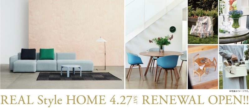 この度、リアルスタイル名古屋東店は、「HAY」の展示をメインに北欧ブランドを中心としたインテリアのセレクトショップ「リアルスタイルホーム」としてリニューアルオープンします。