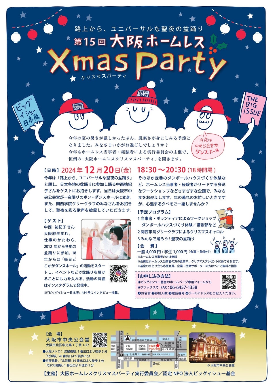 【主催】大阪ホームレスクリスマスパーティ実行委員会/認定NPO法人ビッグイシュー基金
