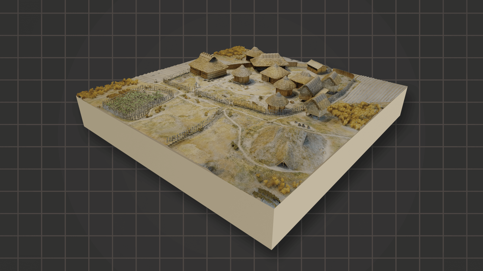 ▼黒井峯・西組遺跡復元模型を活用した『3Dジオラマビューワー』