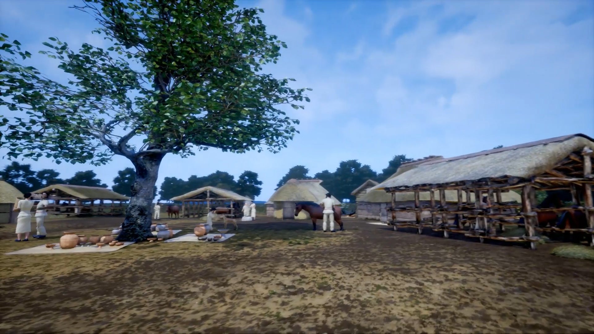 映像とインタラクティブな3Dコンテンツにより古墳時代の村の様子を再現しています。当時の村の人々と榛名山噴火による災害の様子をアプリ内で体験することができます。