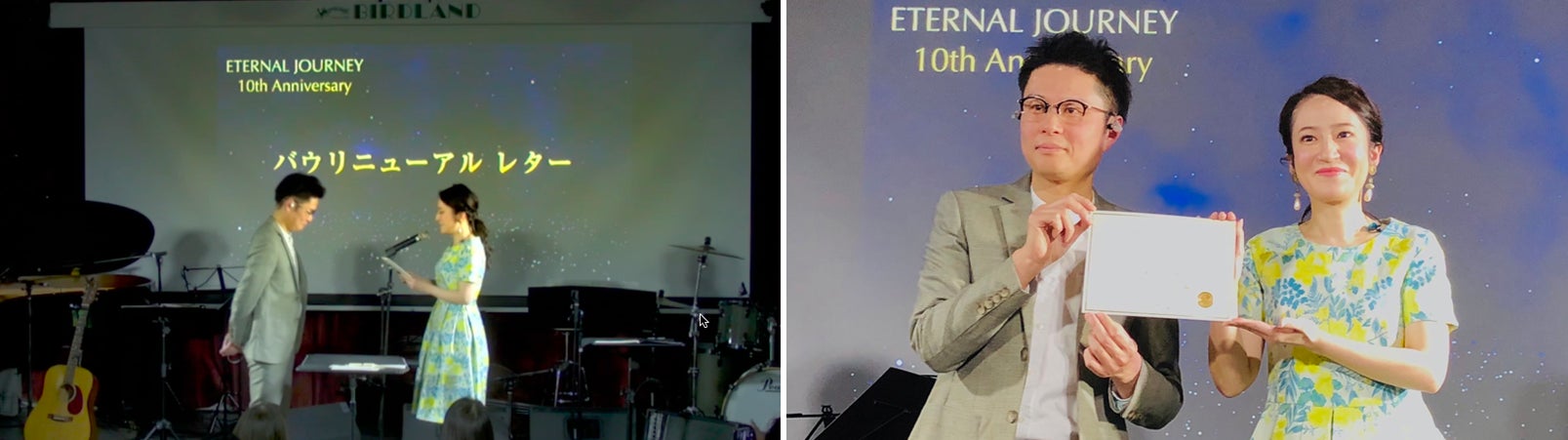 同協会のスペシャルアンバサダーである「ETERNAL JOURNEY」が結成10周年を迎え、1月28日(土)六本木バードランドでの開催された「ETERNAL JOURNEY 10th Anniversary LIVE」にて10周年記念バウリニューアルを実施しました。