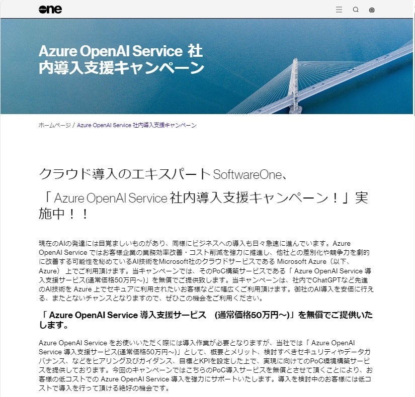 ・Azure OpenAI Service 導入をご検討のお客様、社内でChatGPTをセキュアに利用したいお客様など幅広くキャンペーン対象となります。
