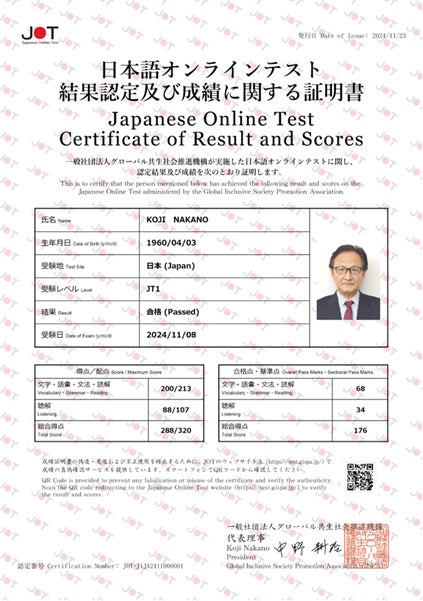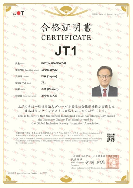 一般社団法人グローバル共生社会推進機構(所在地:東京都/代表理事:中野耕治、以下「GISPA」)が開発・運営する日本語オンラインテスト「JOT(Japanese Online Test)」が、法務省より日本語教育の参照枠に基づくA1およびA2相当の日本語能力試験として認定されました。これに伴い、2026年以降、国内外の受検会場を大幅に拡大し、年間受験者6万人規模の運用体制を構築します。