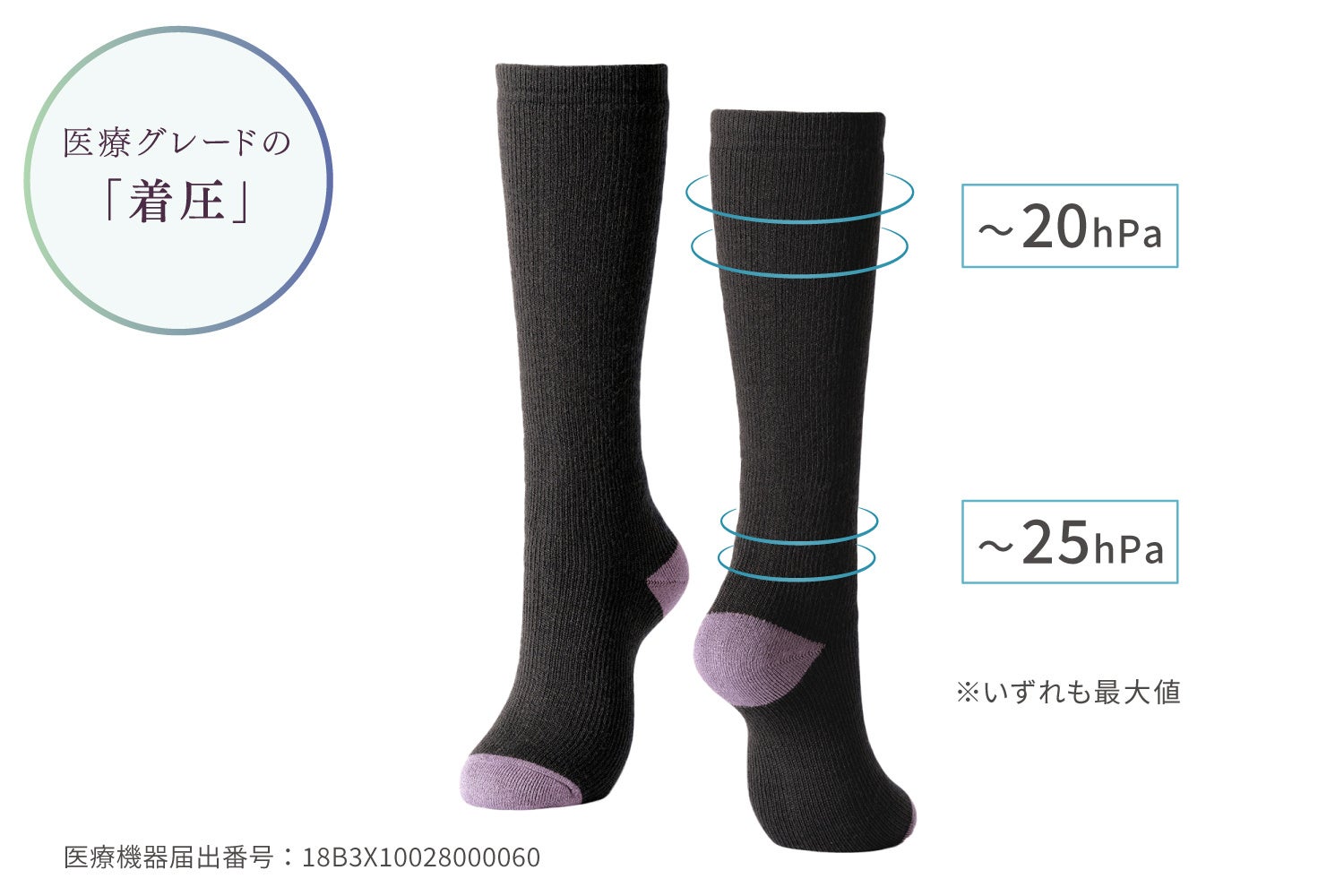 カテゴリ:一般医療機器 「弾性ストッキング」 医療機器届出番号:18B3X10028000060