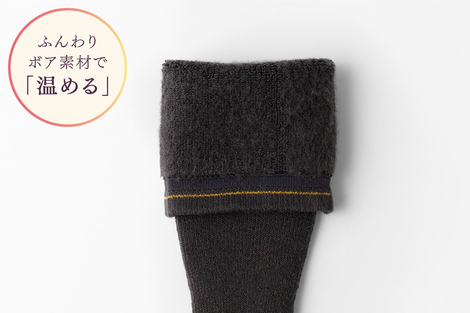 保温性の高いウール混素材を、ふんわりしたボア仕立てに。肌にあたる面を起毛させ、冷えをよせつけず、ぬくぬくと包み込む極上のあったか素材に仕上げました。